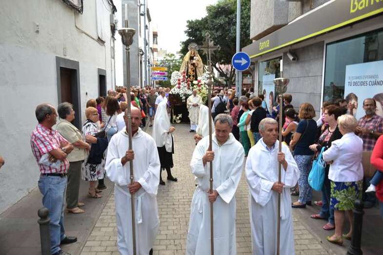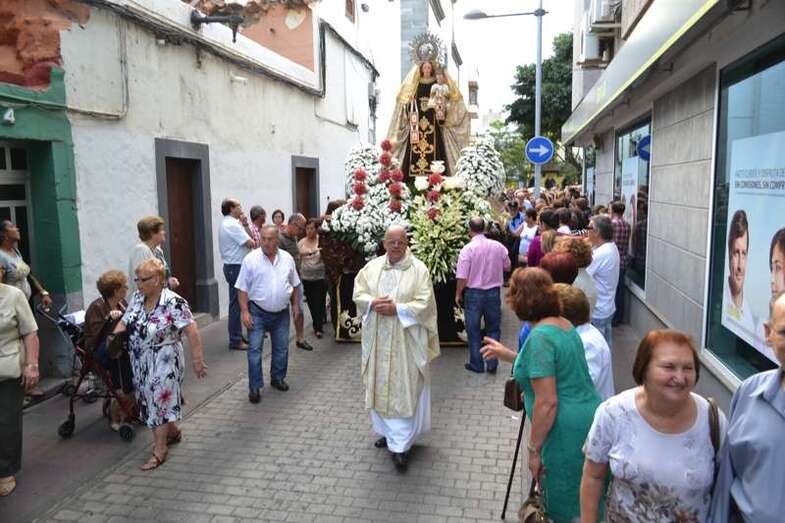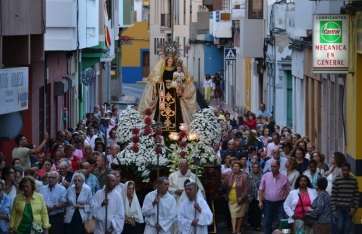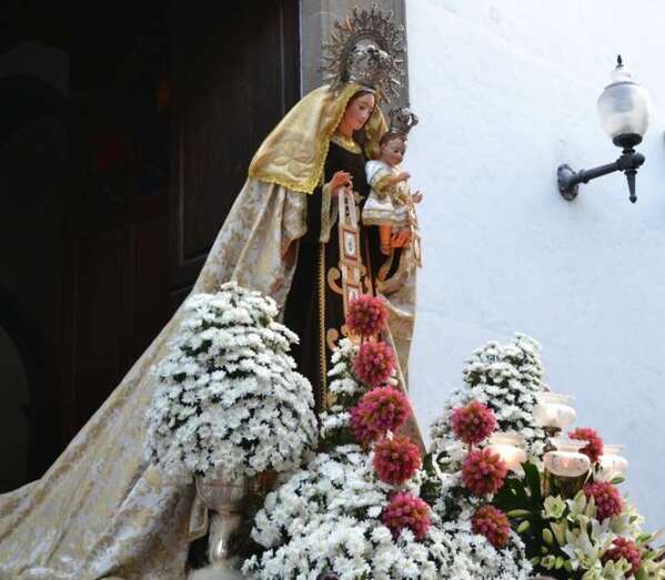 En la tarde del 16 de julio la imagen en procesión, como de costumbre, en la ofrenda que los fieles le profesan a la Virgen, la comitiva presidida por el párroco, las autoridades municipales, la centenaria Banda Municipal de Música de Telde y un numeroso grupo de devotos siguieron los pasos de su trono, bellamente engalanado por un artista del diseño y ornamento floral, Ignacio González Santana, que como viene haciendo con otros tronos dedicados a otras imágenes, cada vez supera la belleza de su trabajo floral.