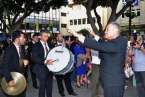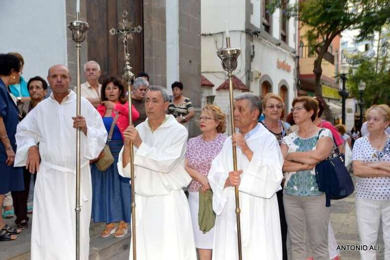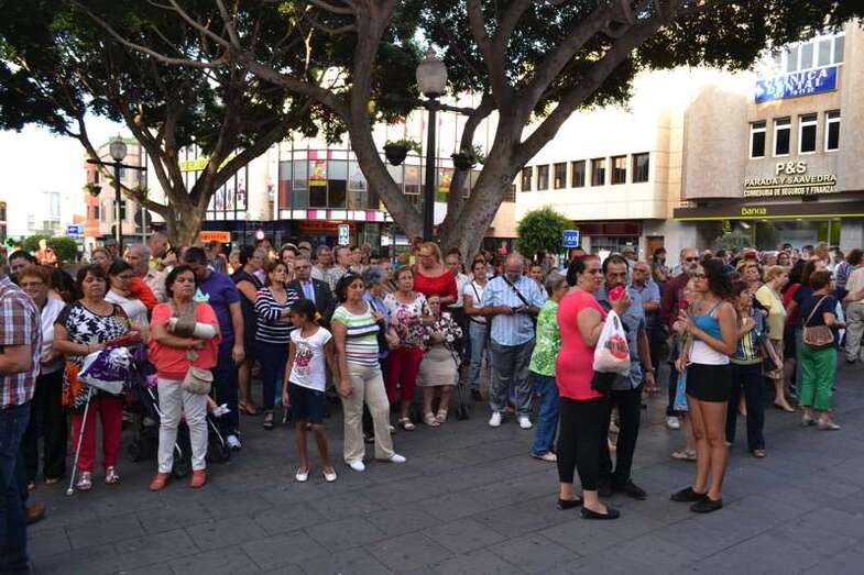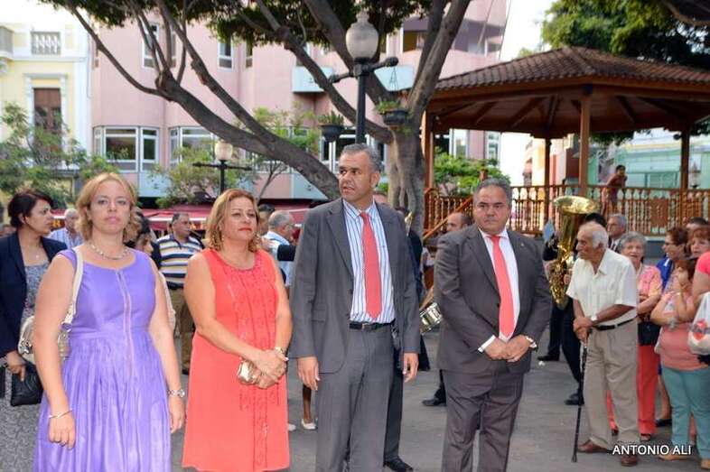 Acto seguido la comitiva se puso en marcha por las calles del núcleo comercial más próximas a la plaza de San Gregorio y al templo, acompañada también por diversas autoridades públicas, entre las que se encontraban la alcaldesa Mari Carmen Castellano, los concejale Sonsoles Martín y Francisco López por parte del Gobierno, y Josefa Milán, Celeste López, Minerva Alonso y Francisco Medina de la oposición, así como el consejero insular Francisco Santana.