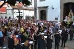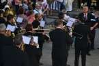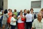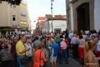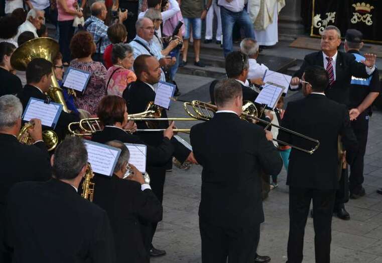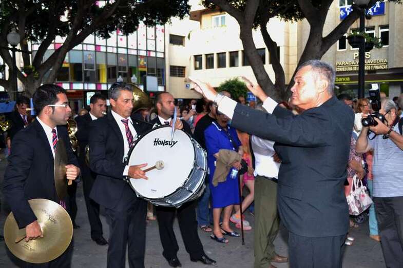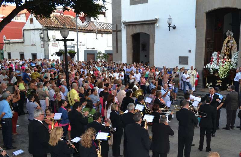 La talla de la Virgen del Carmen enfiló la puerta de la fachada principal de la Iglesia, siendo recibida por la multitud de personas que la aguardaban en la plaza pública con una salve cantada a la que acompañó musicalmente la Banda Municipal de Música de Telde.