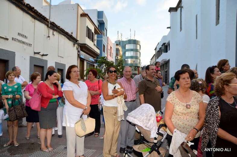Durante el recorrido por las calles de Juan Diego de la Fuente, Francisco González Díaz, Oriente, María E.Navarro y Rivero Bethencourt, el paso del trono de la Virgen fue saludado con el lanzamiento de varias petaladas de flores.