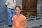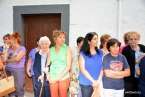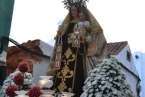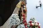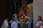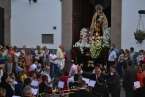 Fieles a la presencia de la imagen bajo sus domicilios, asomados a las ventanas, derraman puños de pétalos de rosas que caen como copos de nieve en el verano atemperado de nuestro benigno clima. Ventanas, balcones enrejados, azoteas, y puertas que lucen banderas y estandartes con la imagen de la Virgen, la comitiva continúa con el eco de sus rezos, canciones y el sonar acompasado de las piezas musicales de la Banda de Música.