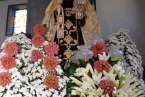 Un bonito arreglo floral elaborado a base de crisantemos blancos, liliums color champagne y unos novedosos cardos morados, engalanaba el trono procesional que este año contaba con la novedad de lucir un ángel en su frontal y no el escudo de la ciudad de Telde como venía haciendo hasta ahora.