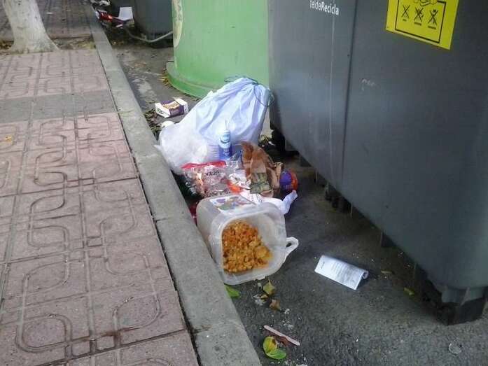 Además explican que una señora extranjera, que han visto por varios puntos de la ciudad, se dedica a sacar las bolsas de basura con un palo y a dejarlas abiertas en la acera, dándole igual lo que contenga dentro. El principal problema es cuando en esas bolsas hay restos de comida, a lo que hay que añadirle el calor, los animales y el mosquerío verde que se forma, y con el consiguiente riesgo de infección.