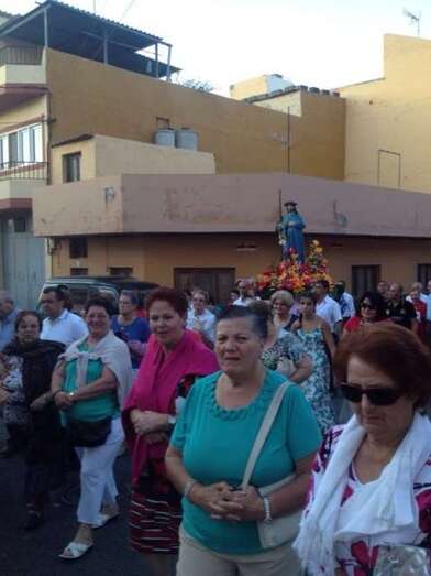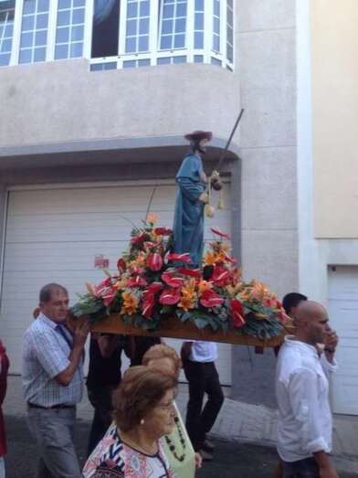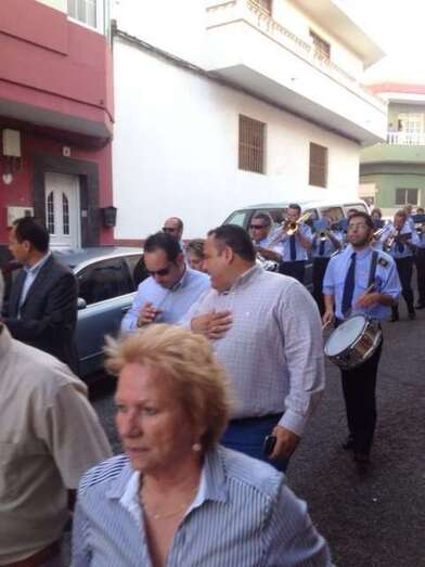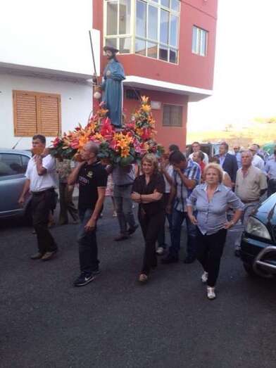 Tras la eucaristía, oficiada por el párroco de la zona los tronos de los patronos salieron a hombros de feligreses en su periplo por las principales calles de Lomo Cementerio, acompañados de la Banda Municipal de Música.