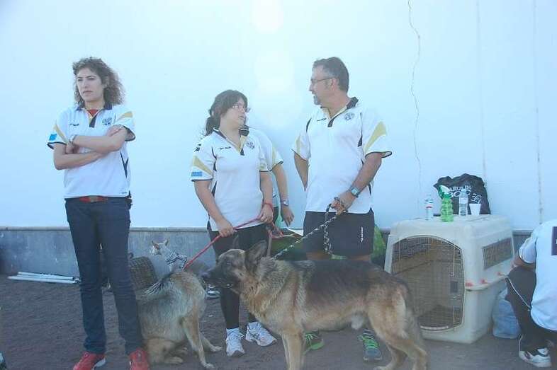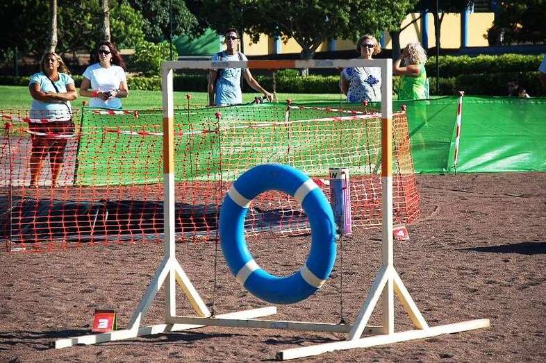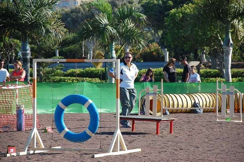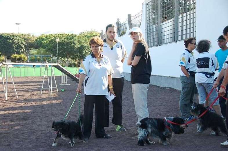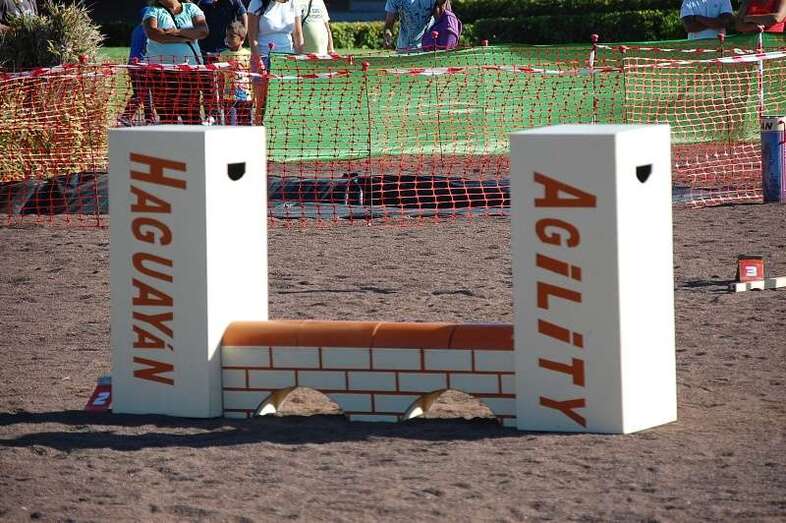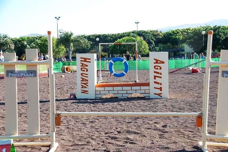 Tras la inauguración oficial del parque canino, en la explanada de tierra que cubre el antiguo lago emplazado al Sur del camposanto hubo varias exhibiciones de perro. Se inició con la de canes adiestrados de miembros del Club Agility Haguayan, de Ingenio. Los animales guiados por sus dueños sortearon una serie de obstáculos que deben pasar de manera limpia y lo más exacta posible, en una competición contra reloj.