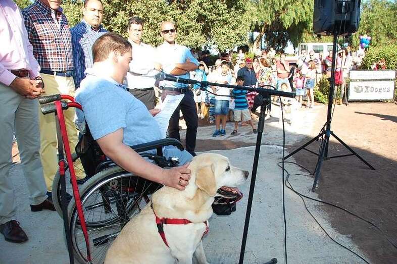 El equipamiento promovido por el área de Parques y Jardines que dirige el edil Mario Torres se abrió esta tarde al público en el transcurso de un acto presentado a dúo por Aduén Hernández y Ezequiel López que comenzó con la lectura de un manifiesto a favor de los perros leído por Ciro Curbelo, un joven discapacitado que se ayuda de un perro ciego. Este animal, un Chester, fue el que trasladó la tijera que se usó para cortar la cinta inaugural del recinto, evento en el que participaron los ediles Juan Martel, Mario Torres, Agustín Pérez y Fidel Ruiz, todos ellos del Gobierno municipal.