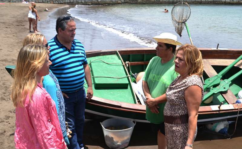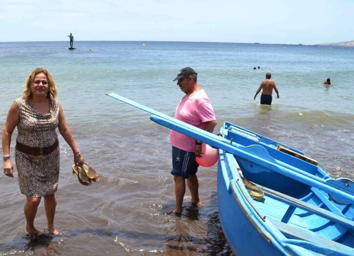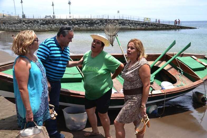 Hasta la alcaldesa de Telde, Mari Carmen Castellano; el consejero insular de Pesca, Francisco Santana, y la concejala Sonsoles Martín se acercaron a la marea para conversar con Carmen Rosa junto a su barca, la Mario Compaluna.