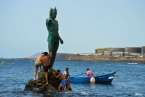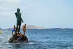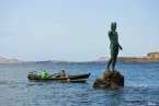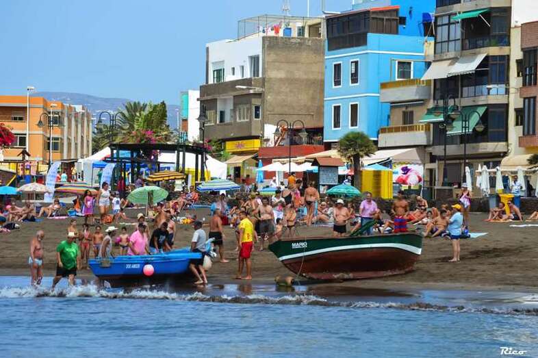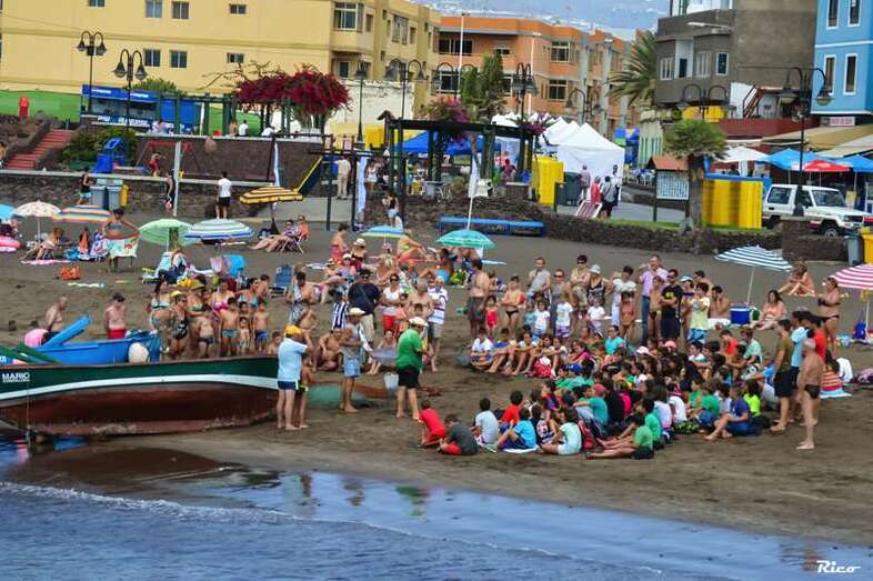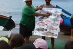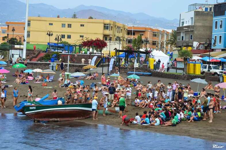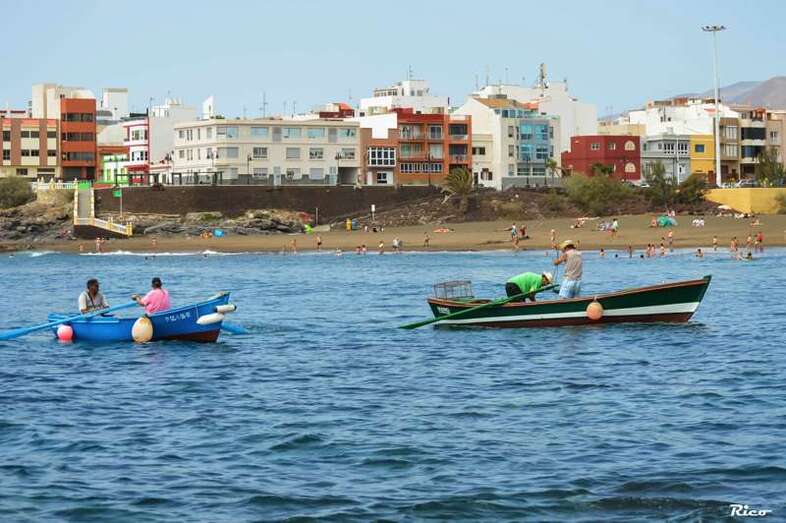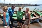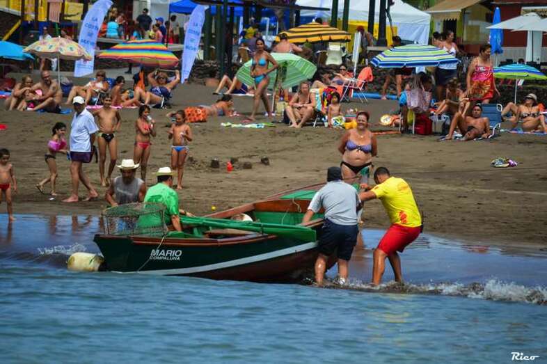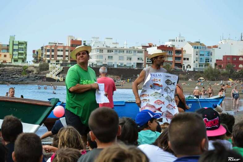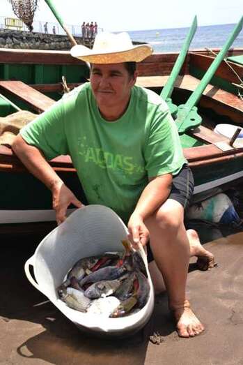 Llegó a mediodía a la orilla de Melenara a bordo del Mario Compaluna y seguida del Dos amigos, dos botes de pesca tradicional ataviados con nasas y artes de las de siempre. Allí ya le aguardaban expectantes un numeroso grupo de niños y algún otro adulto a los que durante cerca de dos horas (12.30 a 15.30) Carmen Rosa Santana les habló de su experiencia como pescadora y mujer que lleva toda su vida ligada al mar.