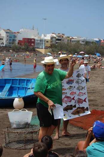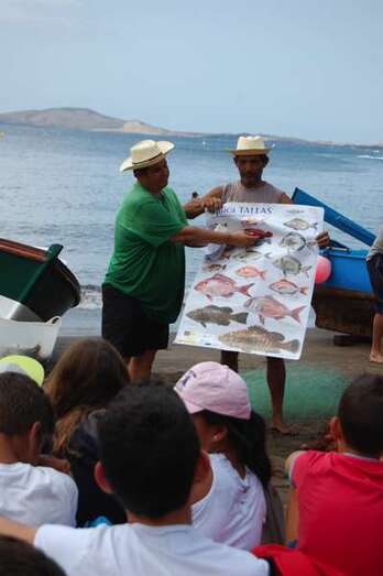 Les mostró las redes con las que faena e incluso les trajo pescado fresco recién capturado. También les dio algún que otro consejo y les explicó las tallas mínimas que hay que respetar para garantizar una pesca sostenible que permita en el futuro poder seguir disfrutando de este manjar que va “del mar a la mesa”. Lema de las jornada gastronómica 'Bitácora' que durante toda la jornada de este jueves se ha desarrollado en el litoral de Telde y que, además de este taller, ha incluido numerosas actividades.