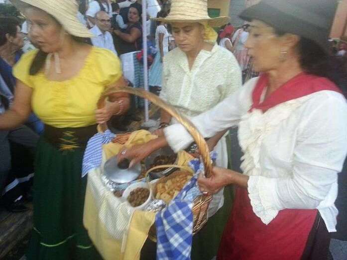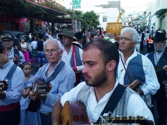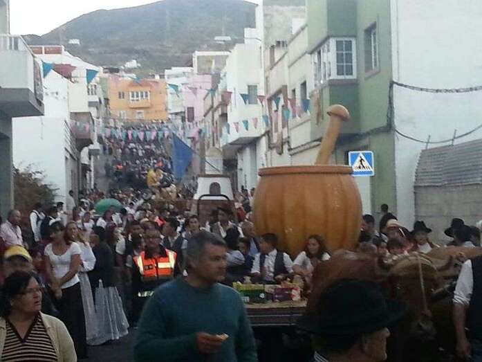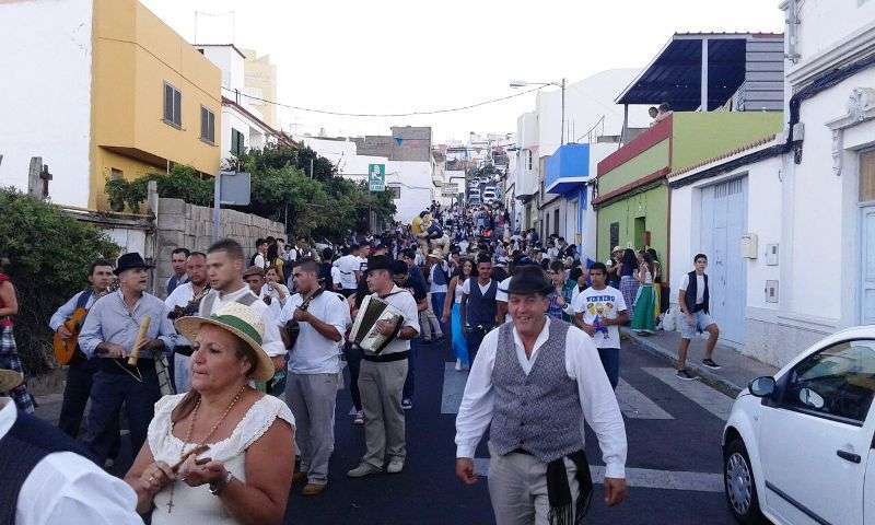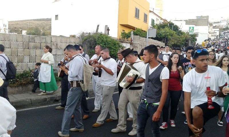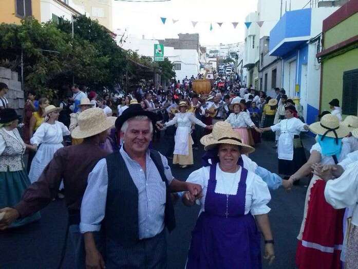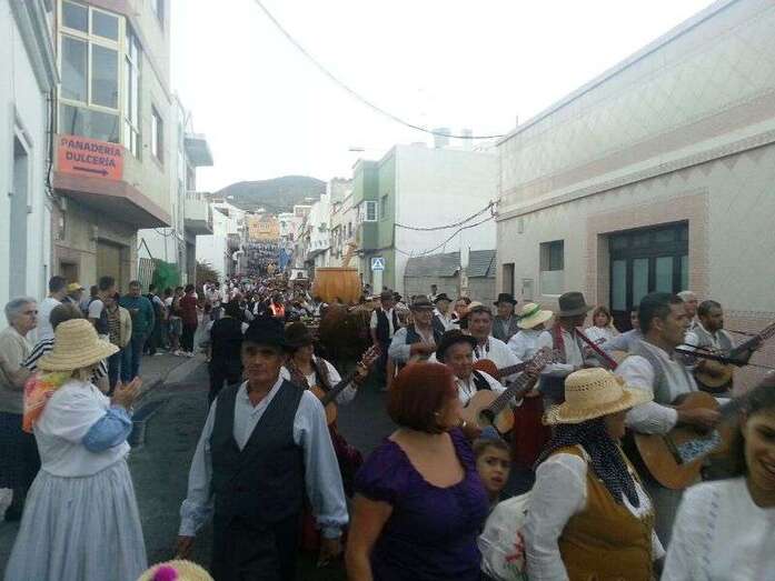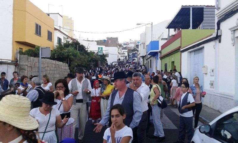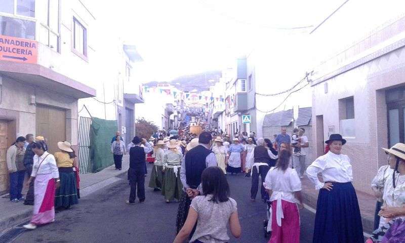 Telde.- El barrio teldense de Lomo Magullo se viste esta noche de típico para acompañar, en la víspera del día grande de sus fiestas, a la romería-ofrenda en honor de la Virgen de las Nieves. Un desfile popular que comenzó hace unos minutos y en el que participan más de 450 personas y cinco carretas.