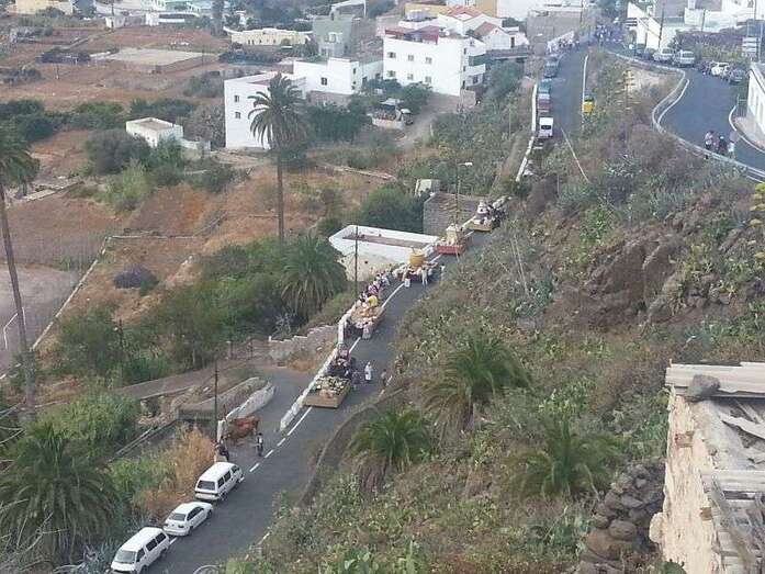Pasadas las 20.15 echaba a andar el primero de los cinco carromatos -tres de los cuales son tirados por bueyes y el resto por pequeños tractores- desde el cruce de Arenales en dirección al templo de Las Nieves, dando así por iniciada esta romería popular que se encuentra amenizada por varias formaciones musicales de folclore y en la que participan personas de todas las edades ataviadas con la vestimenta típica, entre ellos los concejales Juan Martel y Mario Torres y el consejero insular Francisco Santana.
