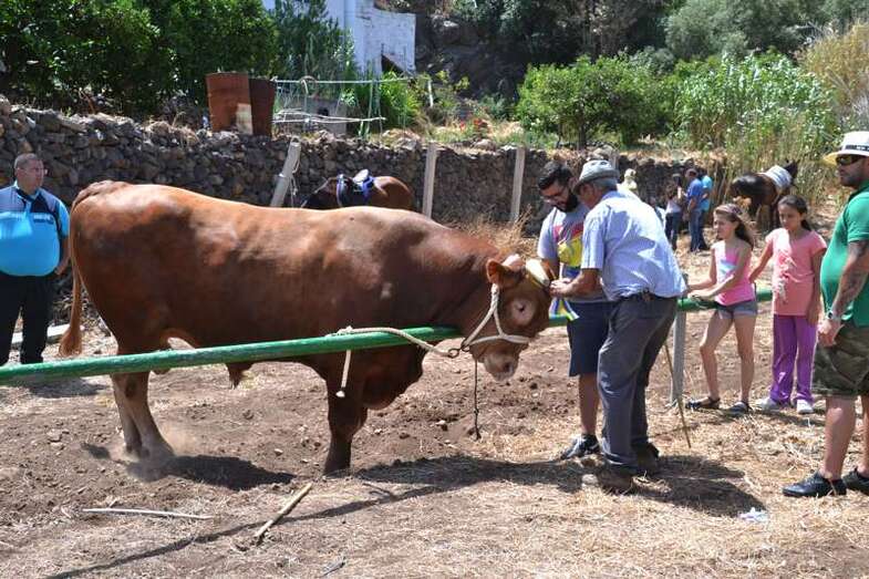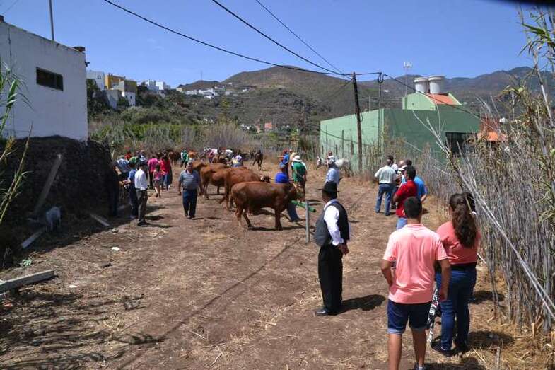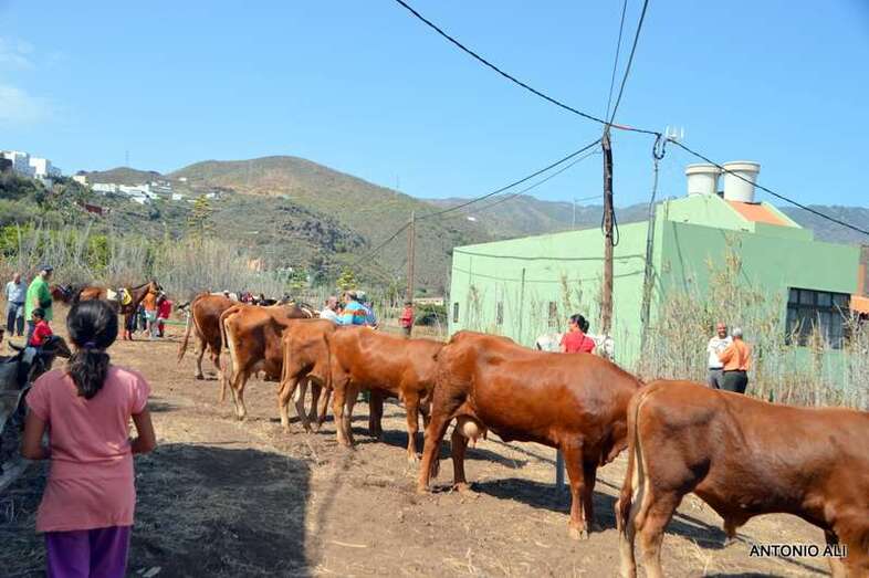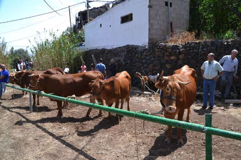 Telde.- Una veintena de animales se exponen en la mañana de este martes en el barrio de Lomo Magullo, que hoy celebra la festividad de la Virgen de las Nieves, día grande de sus fiestas, con una feria de ganado. Hacía cuatro años que el pago no organizaba este evento.