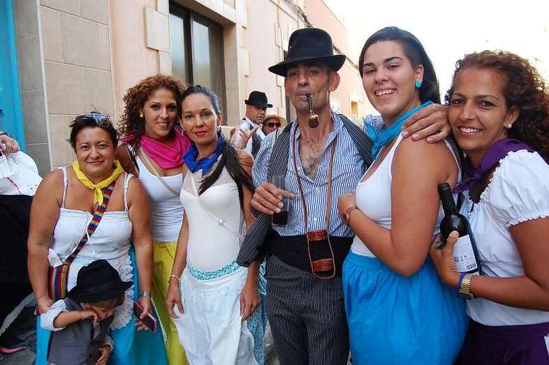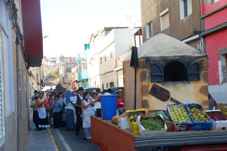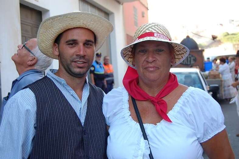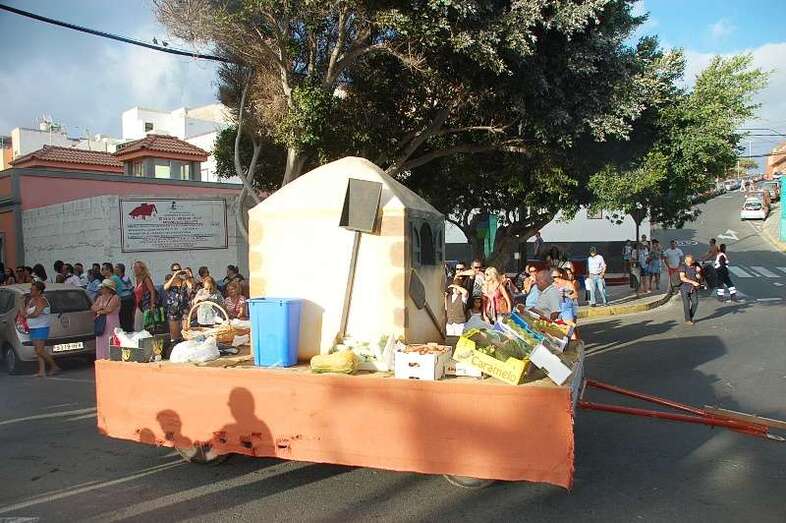 Telde.- Algo más de medio millar de personas integraron la tarde de este sábado 23 de agosto la romería de Melenara que discurrió por las calles del sector para concluir hora y media después en la plaza pública de Clavellinas, donde tendría lugar la ofrenda al patrono Santo Cura de Ars y a la Virgen del Carmen de productos de la tierra y un baile de taifas. TA avanza reportaje gráfico de la romería.