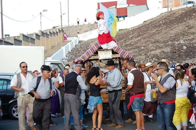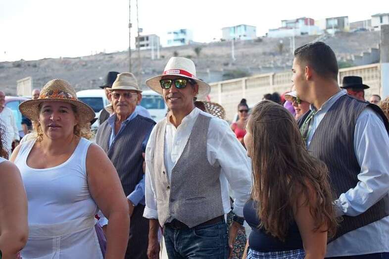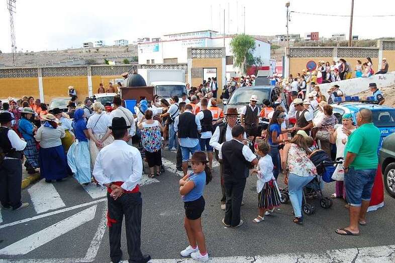 Al filo de las 19.00 horas el desfile popular arrancó en el campo de fútbol con el concurso de cuatro carretas y varias agrupaciones folclóricas que alegraron con sus cánticos la bulliciosa comitiva organizada por el Patronato de Fiestas de Melenara 2014 que preside Carmen Rosa Santana, al frente de uno de los vehículos que tiraba de una de las carretas.Entre los asistentes a la romería estaban los ediles Juan Martel (vestido de paisano) y Minerva Alonso, con vestimenta típica canaria.