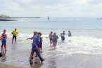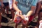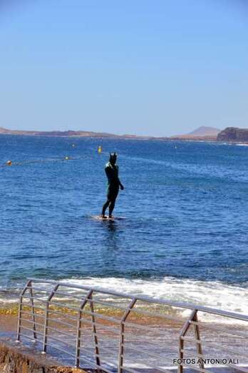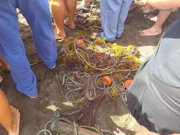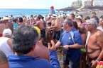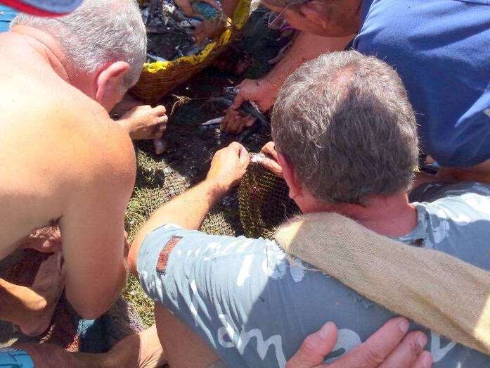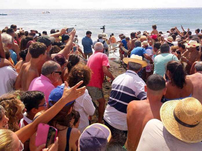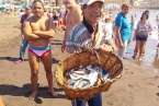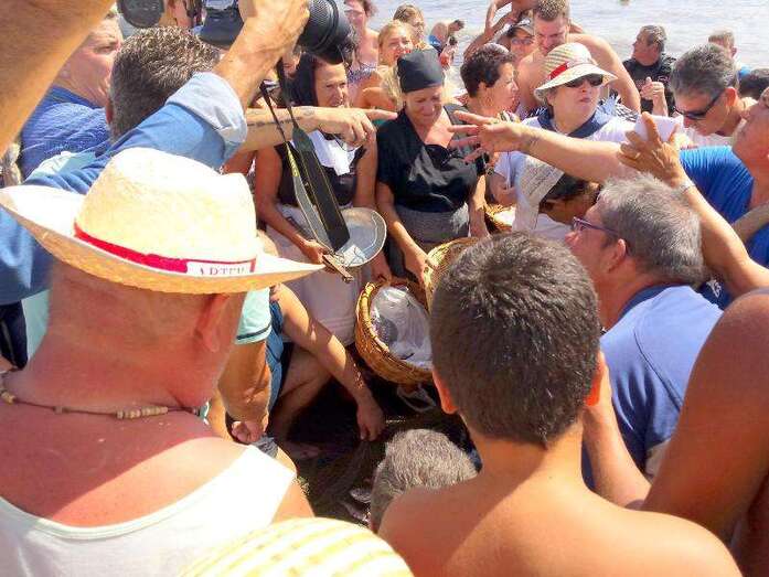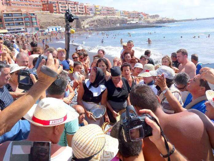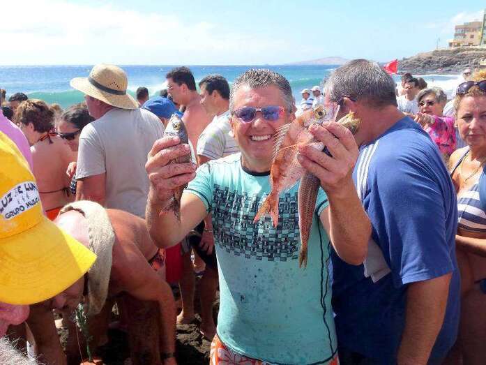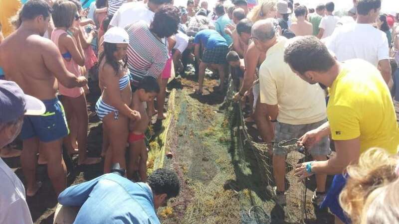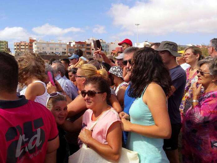 A las 10.00 horas, una embarcación a remo de los pescadores con sede en el muelle de Taliarte arribaba a la playa de Melenara, donde luego sus ocupantes, marinos de la zona, mostrarían el arte de pesca del chinchorro ya en desuso.
