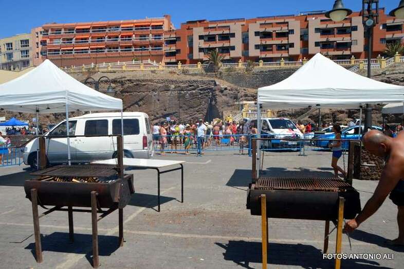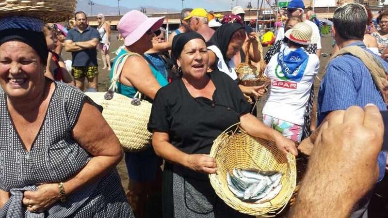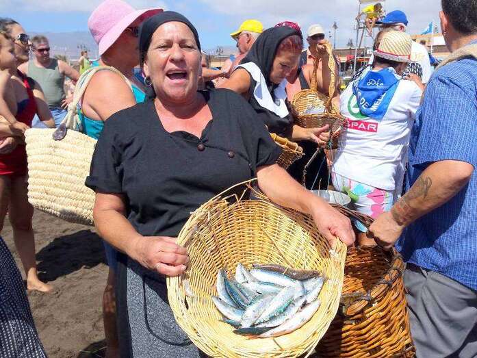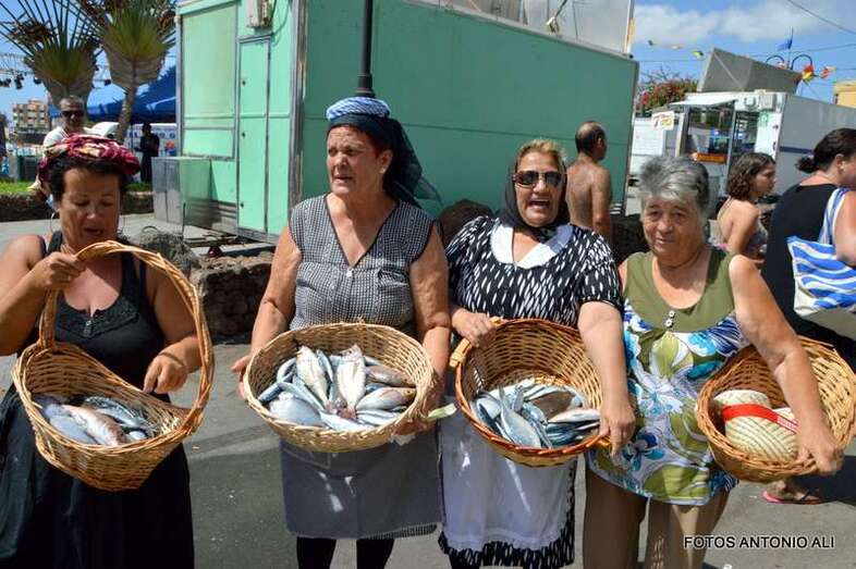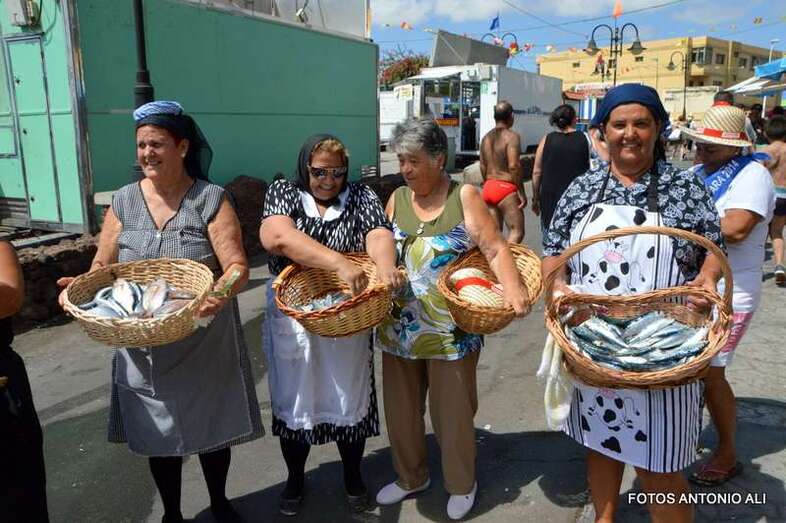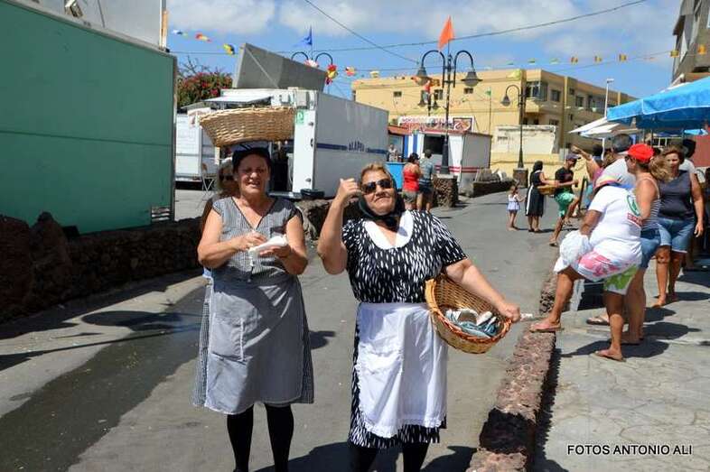 A partir del mediodía, el antiguo espigón del muelle ofreció una exposición de coches Ford y tuneados que concitó el interés de numerosas personas y desde las 14.00 horas un asadero popular de 100 kilos de sardinas y la representación en una playa llena de bañistas por vecinas de la zona de Las vendedoras de pescao, una escenificación que rememora el trabajo que, en la década de los años 50, realizaban a orillas del mar las humildes esposas de los pescadores de la zona, vendiendo por las calles y casas lo que ellos pescaban, o echando ellas mismas el chinchorro.