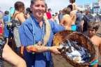 Telde.- Con un calor sofocante, a pesar del viento, el núcleo costero de Melenara, con la playa a tope de usuarios, fue epicentro de una jornada festiva intensa marcada por la exhibición del tradicional chinchorro, una exposición de coches Ford y tuneados, la escenificación de la varada del pescado y un gran asadero popular. TA ofrece un amplio reportaje gráfico.