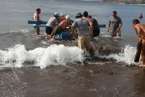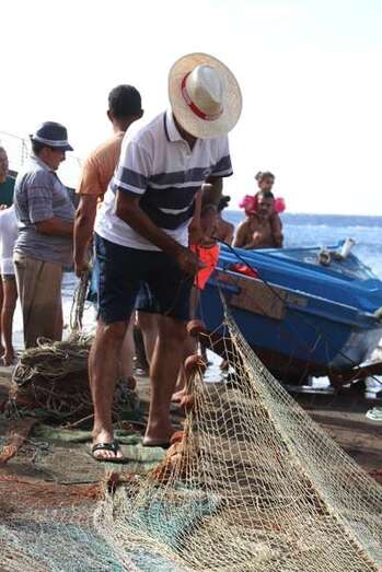 Con arreglo al programa de festejos que se celebran en honor al Santo Cura de Ars y la Virgen del Carmen, tuvo lugar la varada de pescado, desarrollo de cómo se realizaban las faenas de pesca de los marinos de Melenara, labores que mostraron todas las fases de preparación para salir a la mar en aquellas barcas que a golpe de remos, pulmón y timón se hacían con su barca que entre las olas, a veces con malas mareas, se perdían mar adentro en busca del fruto de la mar, en busca de su sustento, en busca del pan de sus vidas, sudor, frío, fuerza, músculo, valor, mucho valor y esperanza de llenar sus redes, y volver con la alegría de quienes en sus redes han puesto el milagro de estas aguas, llenarlas y ofrecer su pescado al público que muchas veces se dejaba llegar hasta estas orillas, hasta los mercados, o a grito limpio y toque de bucio por las calles…….¡pescaito fresco de Melenara!