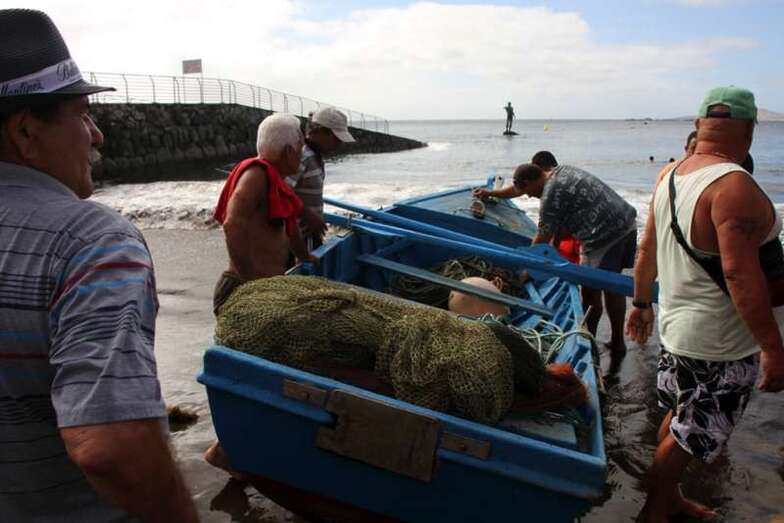 Todo esto se ha podido ver esta mañana en las orillas de nuestra cala teldense, Melenara se ha puesto a trabajar para dejar ver como las redes se preparan, se ordenan, se colocan sobra la barquilla azul, “dos amigos”, dos remos, cuatro marinos, y adentro a la vista de todos, no muy lejanos pasado el Neptuno sobre el Puntón, les hemos visto adentrarse, gesticular y maniobrar, con sus propios gestos y maneras de moverse sobre la lamina plateada de agua de nuestra bonita bahía, con el ritmo, el golpe, toque y sabiduría en esta ciencia, que estos hombres de la mar, descendientes de aquellos barqueros de honrosa memoria, apellidos y familias que han dejado su impronta, su profesión de gente de la mar, los que hace años enseñaron estas artes, difíciles, por sus métodos sencillos pero artesanales que dejaron su sello personal sobre estas orillas y de las que muchos fuimos testigos.