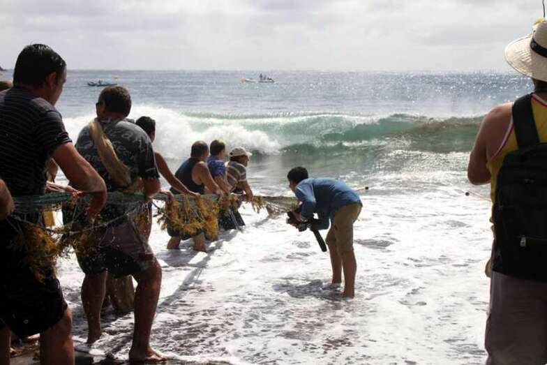 Esta mañana presenciamos en una estampa de gran colorido entre el público que observaba estas tareas, y el espectáculo del chinchorro, con la generosidad, buen hacer, paciencia y alegría por esta faena que, me consta, en cada impulso para tirar de las redes en sus mentes presenciaban las imágenes de sus antepasados que les iniciaron en estas lides, costa, mar, cielo y lo que entre en las redes……y como bien representó y tituló un famoso cuadro el pintor Joaquín Sorolla….. “y luego dicen que el pescado es caro”.