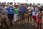 Terminada la XII Travesía a nado 2014 Salinetas Dolores Álvarez, en unas aguas que hasta las orillas llegaban con intermitencias de olas fuertes a causa del mar de fondo que todavía se dejaba sentir, la llegada a Salinetas entrega de premios a los participantes ganadores de las categorías masculina y femenina, el día y el mar se calmaba con la presencia de un sol cada vez más intenso. Las calas de nuestro litoral empezaban a contar con los bañistas veraneantes, locales y foráneos, tal que a las dos de la tarde el paisaje playero era de lleno absoluto.