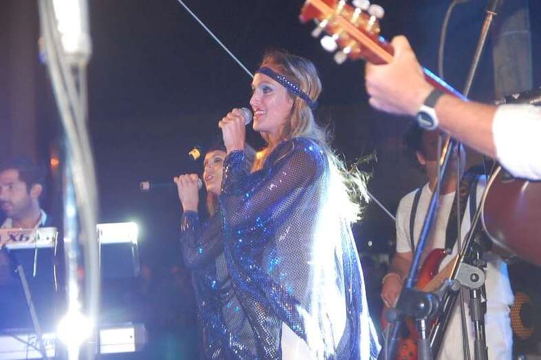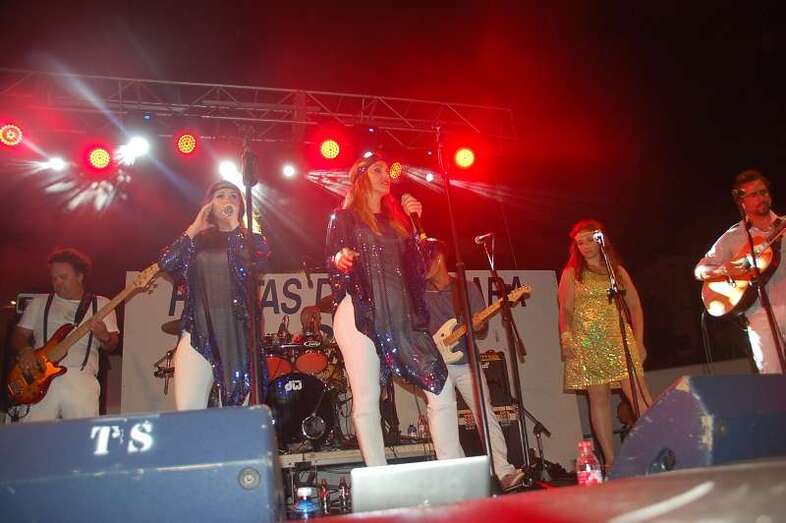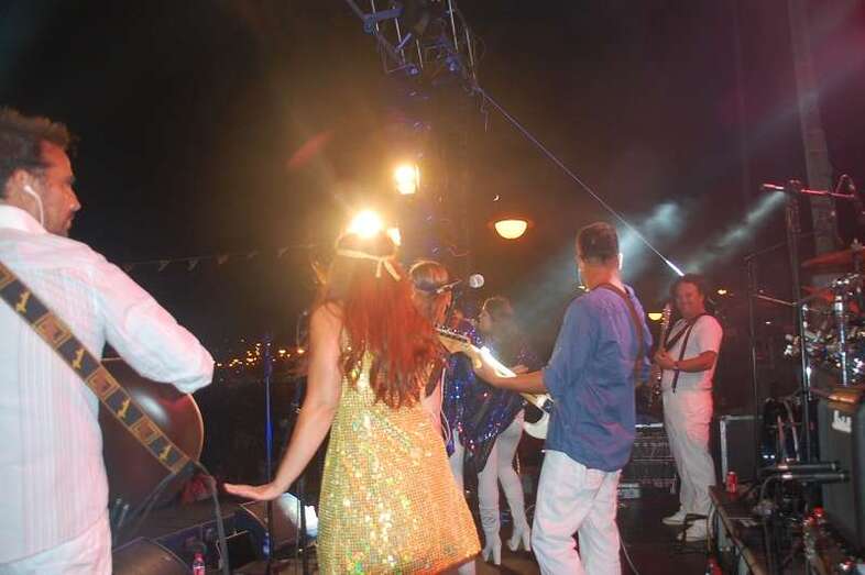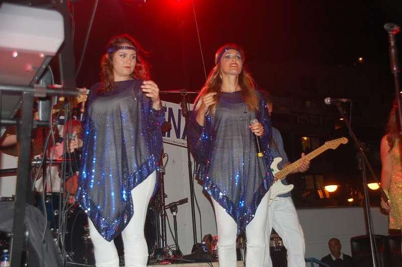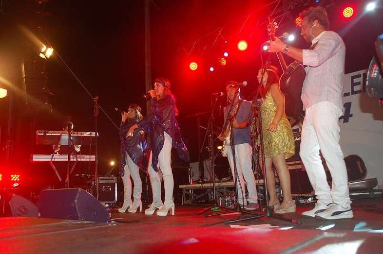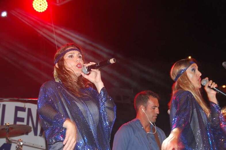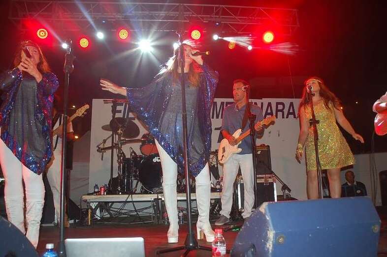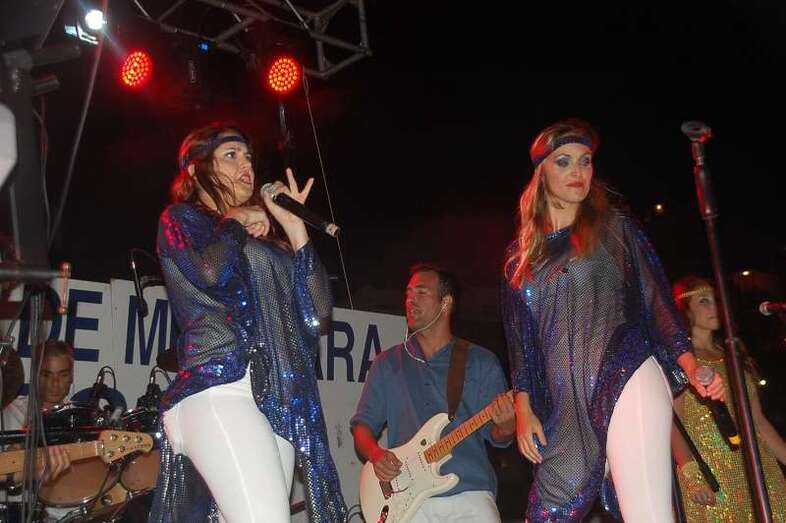 Los nueve músicos y cuatro cantantes que protagonizan el espectáculo ‘Abba Live! Golden Tribute’ duró más de lo previsto, una hora y media, porque el numeroso público congregado en la arena de la playa le reclamó al grupo una ampliación de su repertorio, plagado de grandes composiciones musicales, entre las que figuraron buena parte de los éxitos mundiales del inolvidable grupo sueco como Dancing Queen, Mamma Mia , Super Trouper , SOS, Chiquitita y una larga lista de maravillosos hits.