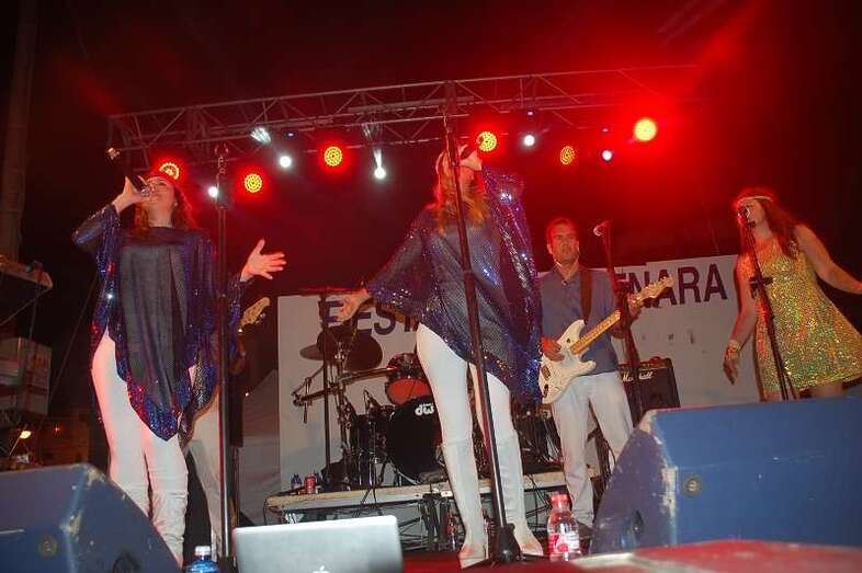 A las 22.00 horas en punto subieron al escenario de Melenara los componentes del grupo Abba Live y comenzaron a sonar los compases de la primera canción de la banda sueca más famosa de todos los tiempos, que se hizo popular por sus pegadizas canciones, letras simples y un sonido propio que bebía de la fuente del pop más vitalista y del glam rock del momento.