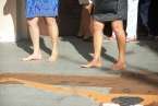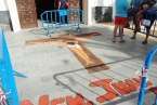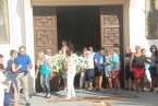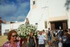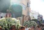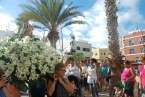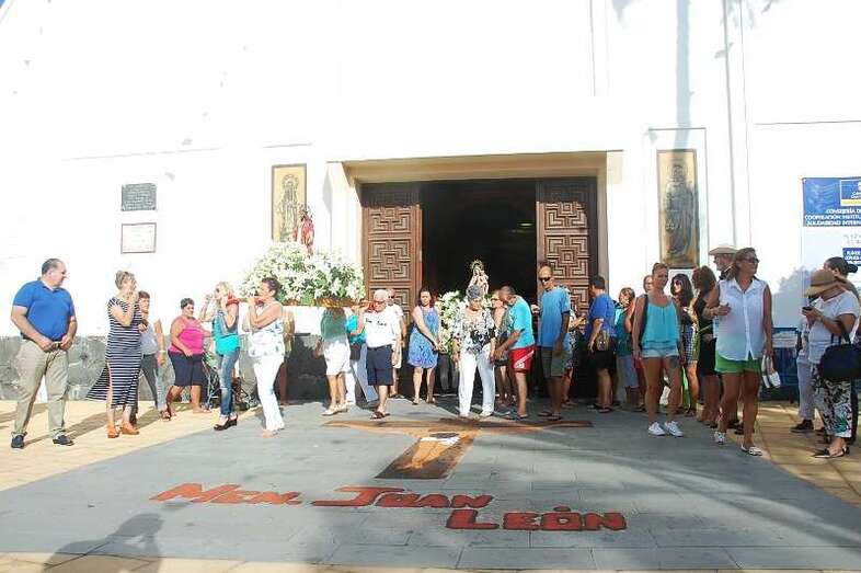 El desfile religioso con los tres tronos portados a hombro por vecinos de Melenara salió del templo de Clavellinas pasadas las 18.10 horas. A la puerta del templo una alfombra de sal en la plaza recordaba a Juanito León, una persona esgtrechamente vinculada con esta parroquia que falleció meses atrás dejando una excelente estela entre la feligresía.