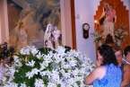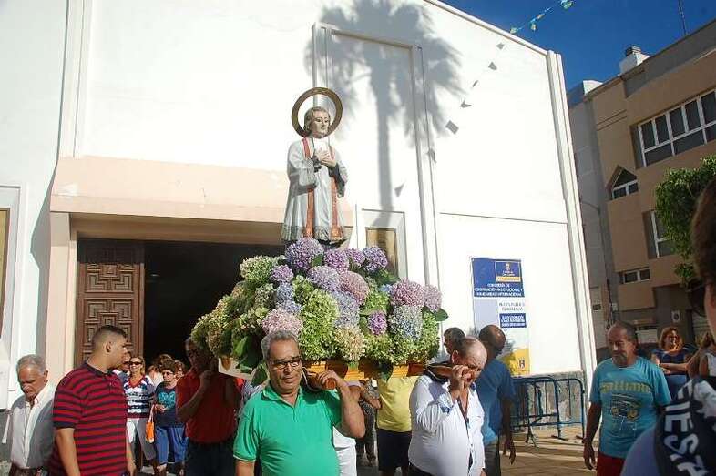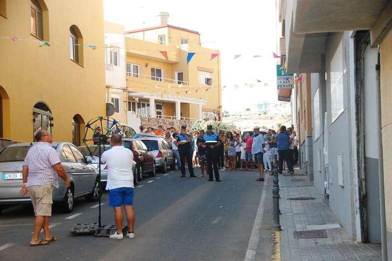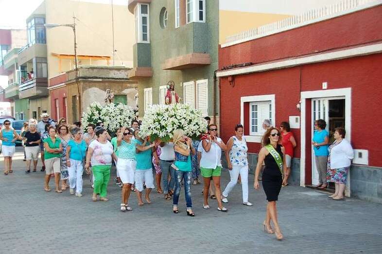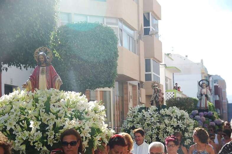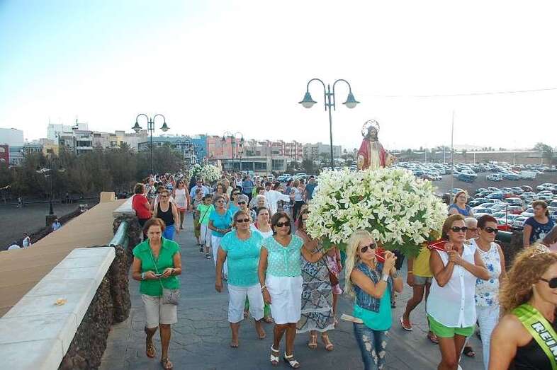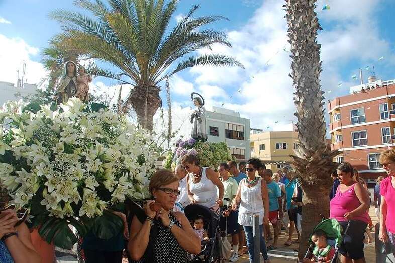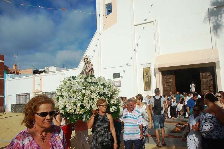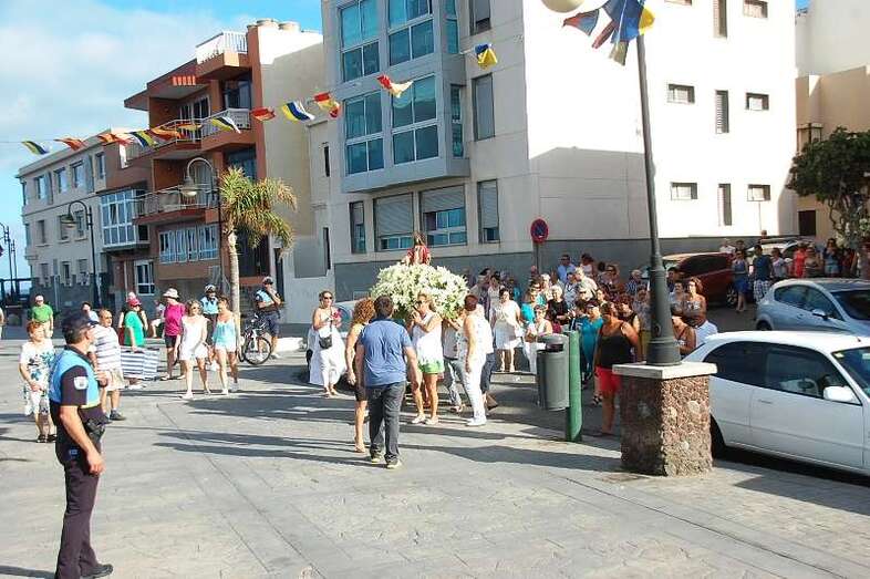 La comitiva religiosa, acompañada por la Banda Municipal de Música y numerosos fieles, efectuó el trayecto habitual por la arena y calles de esta playa, donde la Virgen del Carmen, el Corazón de Jesús y el Santo Cura de Ars fueron acogidos con un engalanamiento especial, repiques de campana, voladores, aplausos, el sonido de caracolas y la interpretación de una canción canaria desde el balcón de una vivienda. En el sector de La Barranquera hubo una traca especial dedicada los patronos costeadas por suscripción popular de los vecinos de Salinetas.