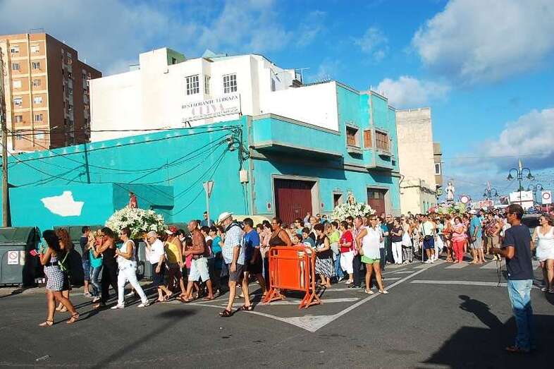 La procesión fue seguida por cientos de personas que se congregaron en las playas y avenidas que bordean la costa de Melenara para seguir y acompañar el recorrido de los barcos de pescadores que portaban, en la tradicional procesión terrestre y marítima, las imágenes de los patronos de la zona.