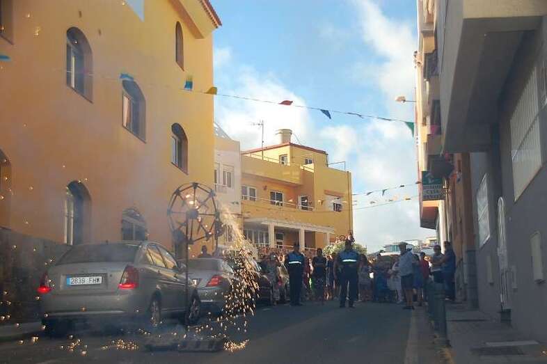 Después de un recorrido por la avenida de Melenara, la procesión enfilo el sector viejo de esta playa donde fue saludada por varias descargas de voladores, vivas del público y pétalos de flores arrojados desde ventanas y azoteas. En la calle de Bergantín, una ruleta pirotécnica dio la bienvenida a los patronos que volvieron de nuevo al paseo marítimo para acercarse a las embarcaciones San Francisco, José F. y Mario de los pescadores que les llevaría en un periplo a remo por la costa de Taliarte y Salinetas con un mar casi en calma. Una nueva traca de voladores lanzada desde el viejo espigón del muelle de Melenara despidió a los patronos cuando el reloj marcaba las 19.15 horas.