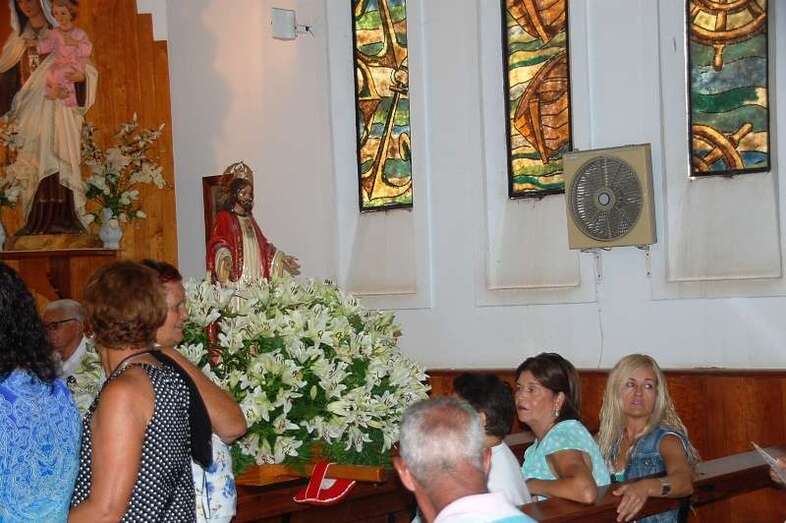 Más de 30 minutos después, los barcos engalanados con ramas de palmeras encaminaban su travesía hacia Salinetas, donde los tronos fueron sacados a tierra, operación que resultó bastante sencilla en esta ocasión porque el mar no presentaba dificultades para la tarea.