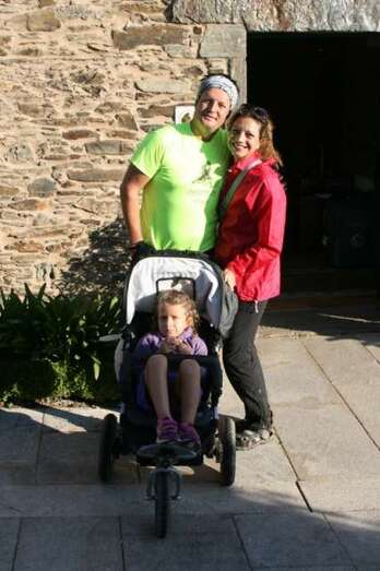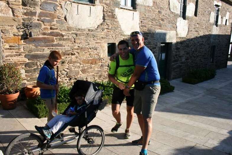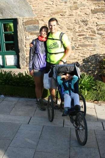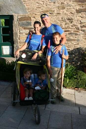 En su afán de inculcar a sus hijos el amor al deporte, el traumatólogo Carlos Afonso Cabrera y su mujer Yaiza Ramos Hernández; el médico de la Unidad Deportiva Gran Canaria (Telde), David Enrique Martín Maturral, su mujer, Cindia Silva Gil; todos ellos con sus hijos, llegaron el pasado 25 de agosto a Santiago de Compostela, después de más de 150 kilómetros, cargando con el carro y sus hijos.