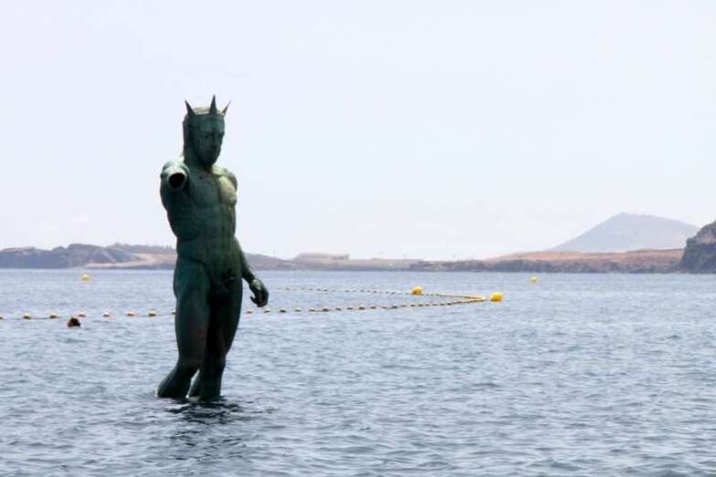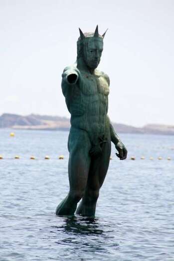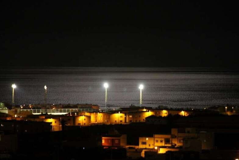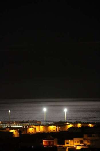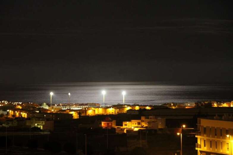 Una simple observación de su grandeza, ante la pequeñez de nuestro mundo en esa galaxia que gracias a nuestros limpios cielos canarios podemos observar. Una luna, un horizonte marino, unas claras aguas, una noche para soñar ante tal espectáculo sobre nuestra bahía, un Neptuno que, constante, reclama de una vez su miembro amputado por un golpe de mar que nada tiene que ver con las tranquilas y sosegadas aguas que hoy le llegan hasta las rodillas. Costa, acantilados, rocas, arenas y orillas, que no dejaban ver un destello de espumas ni blancos perfiles en su final llegada hasta lo que la pleamar permitía. El mar mostraba su cara más amable, más plana, más apetecible para gozar de la frescor de su caricia sobre la piel y calmar el sopor, el bochorno del calor húmedo, que en estos días nos agobia.