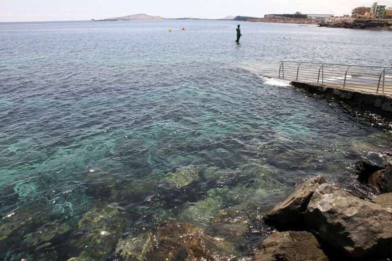 Imágenes que nos sorprenden por los recientes y numerosos cambios de mareas en torno a la época de las del Pino. La mañana del miércoles 10 de septiembre a pleno sol, con mucho calor a partir del mediodía, las aguas de Melenara, como todas las de los litorales en esta época, presentaban un alto nivel subiendo al máximo hasta la hora punta de la pleamar, en un curioso efecto de subidas y bajadas de mareas, las llamadas, mareas vivas, causadas por la posición del sol y de la luna, causa de que en nuestras playas se han podido observar una retirada de las aguas en la bajamar poco frecuentes.