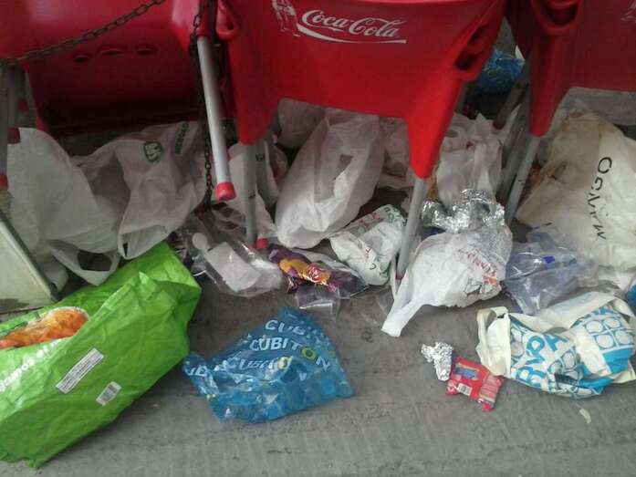 Según residentes en la zona, “La Garita vuelve a ser un vertedero de basura, a pesar que desde primera hora se encuentran operarios limpiando la plaza de la Garita con el concurso de la barredora que se puso al final de la romería”.