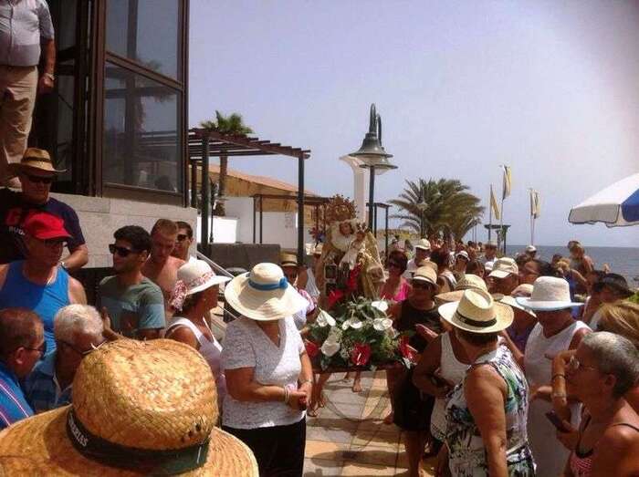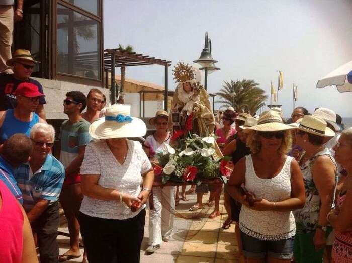 Han sido cuatro días de festejos organizados por el colectivo Playgarza que preside Juan Pedro Pérez Medina. Este domingo, a partir de las 12 del mediodía se celebró la misa oficiada por el párroco José Ramírez y luego tuvo lugar la ya tradicional procesión marítimo-terrestre. Debido al estado del mar, la organización desechó el periplo por la costa a bordo de embarcaciones.