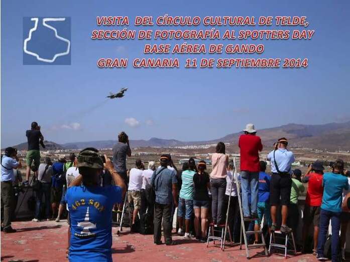 El pasado jueves 11 de septiembre el grupo de fotografía del Círculo Cultural de Telde asistió en la Base Aérea de Gando a la celebración del Spotters Day, o día del fotógrafo aficionado, con motivo de las maniobras conjuntas que se celebraron esta semana en la DACEX/DACT 2014 Defensa Aérea de Canarias del Ejército del Aire. Ejercicios aéreos que se pudieron observar desde un lugar recomendado y autorizado, por el Mando de esta Base Aérea Militar de Gando, que congregó a numerosos aficionados a esta especialidad fotográfica en la jornada dedicada a los Spotters.