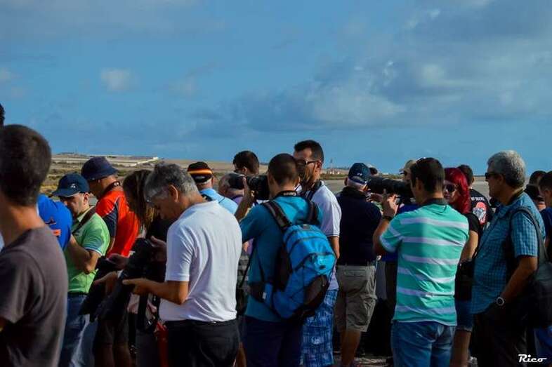 Con la visita realizada a la Base Aérea de Gando en la jornada dedicada a los Spotters, todos los visitantes tuvimos la oportunidad de captar imágenes de estos aviones en evolución sobre las pistas y sobrevolando el área, en una mañana que se presentaba en calma, un buen grupo de aficionados a esta actividad fotográfica, spotters en franca camaradería, apuntando sus objetivos con destreza, sonidos de las ráfagas para captar las mejores tomas, luciendo emblemas y logotipos de los clubs participantes. Un saludo para todos los Spotters, aficionadas y aficionados que, seguro, disfrutaron tomando imágenes desde esta atalaya, haciendo uso de sus magníficas cámaras y objetivos para lograr la mejor foto, para la colección y el recuerdo de una jornada fotográfica completa.