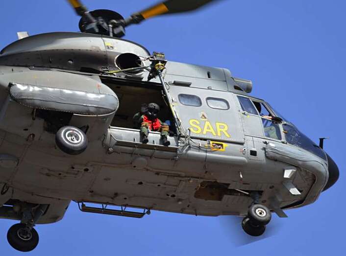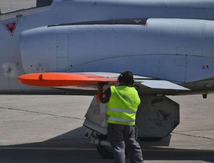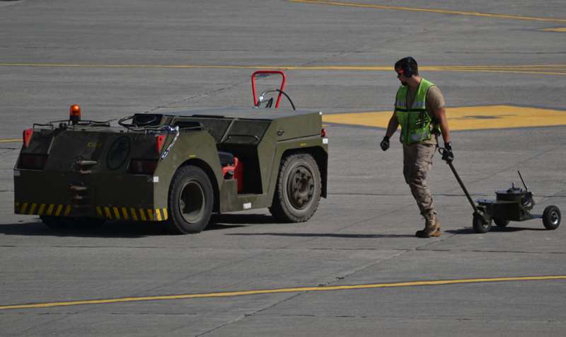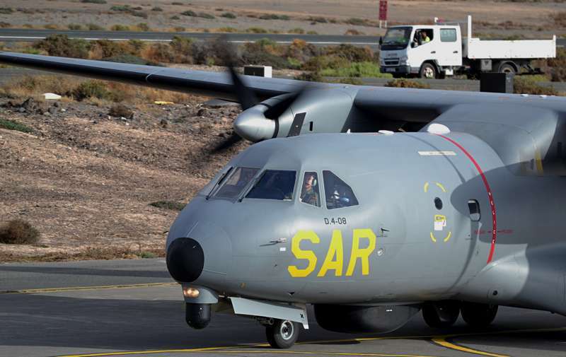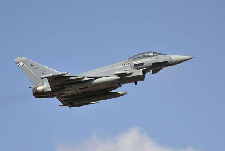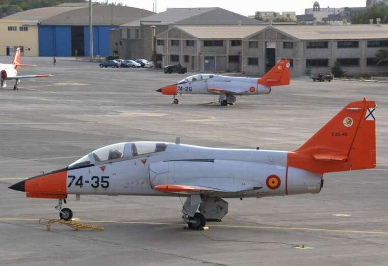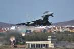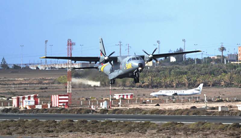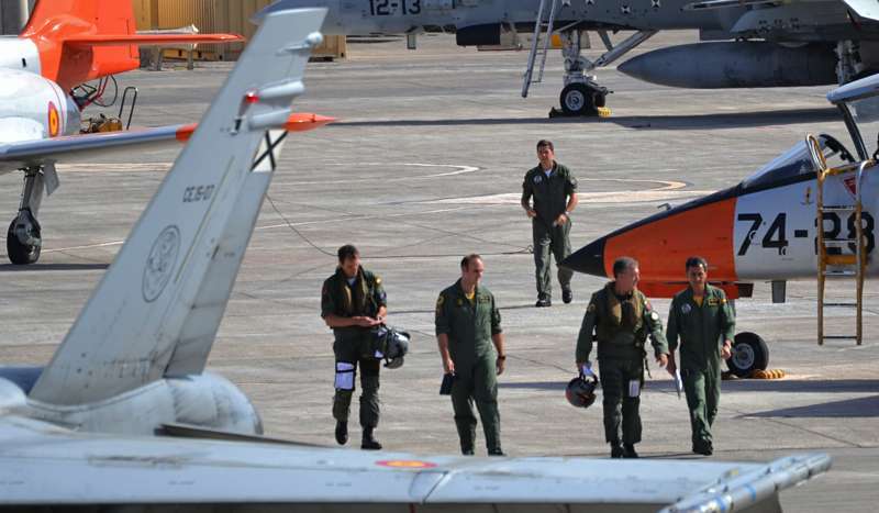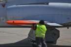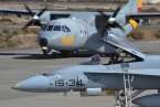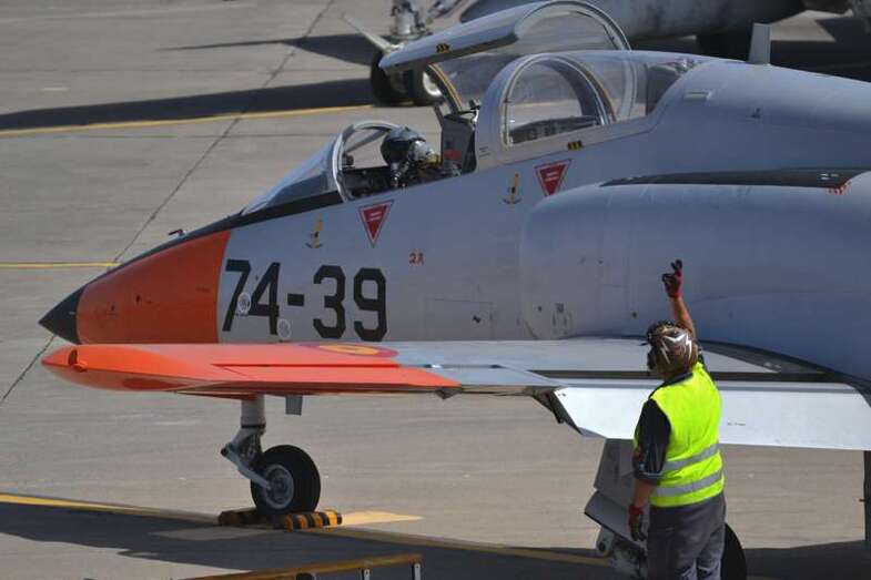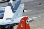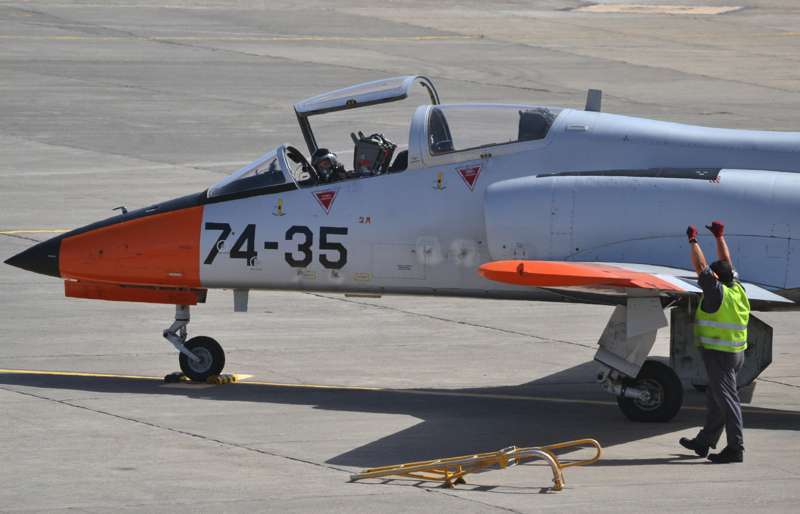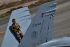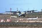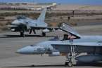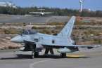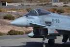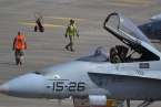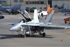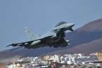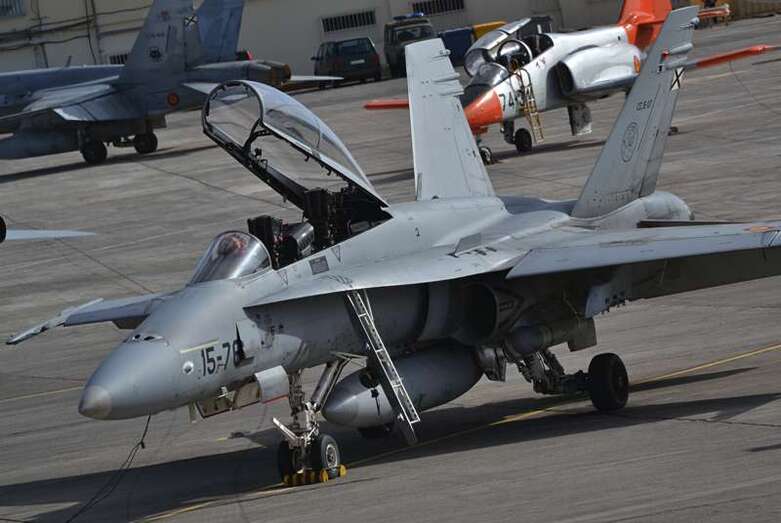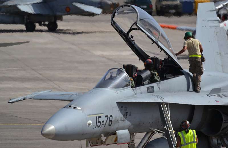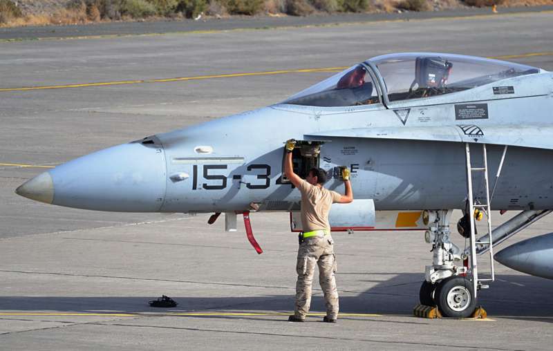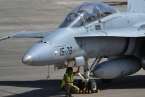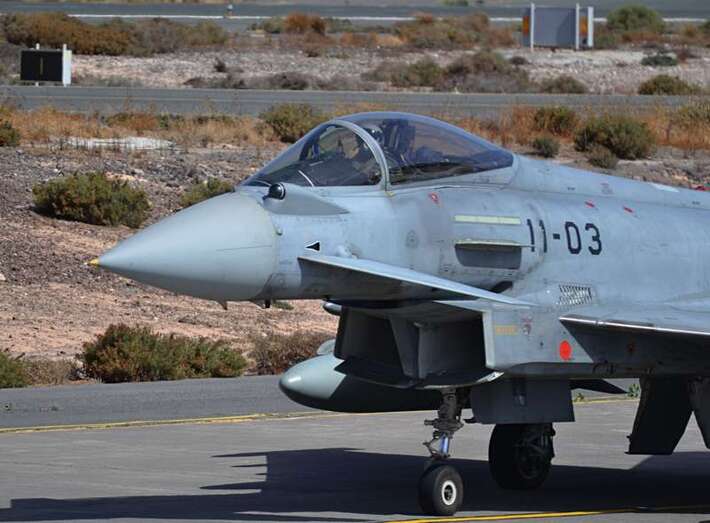 Uno de los F-18 destacados en el Ala 46 sobrevuela la Base Aérea de Gando (Foto Daniel Ojeda)