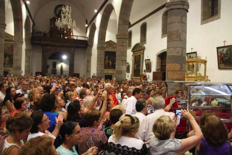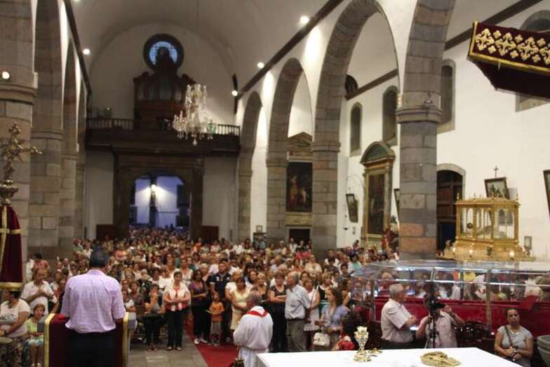 Cantidades de fieles que van en aumento, impresionante la panorámica que desde el pie del altar mayor de la Basílica de San Juan Bautista de Telde, durante la bajada de la imagen, podemos captar en las tres naves y en el exterior ocupando toda el área central de la plaza de San Juan.