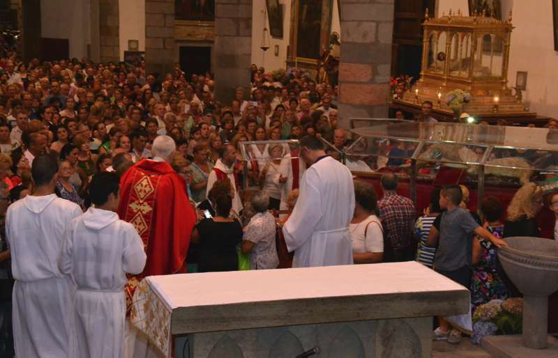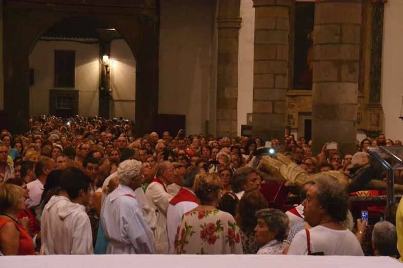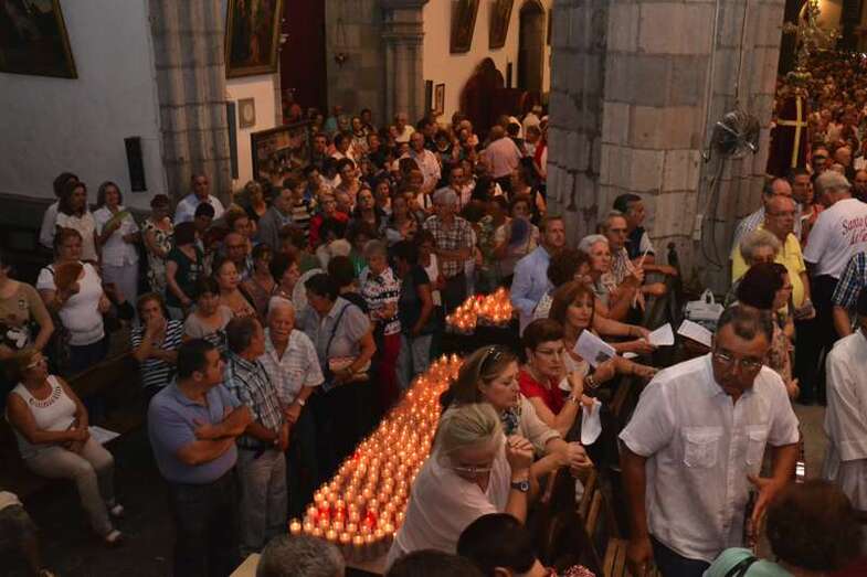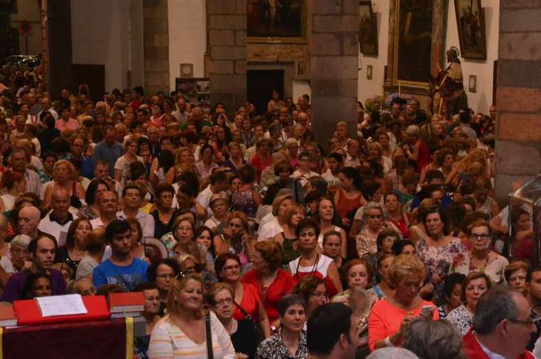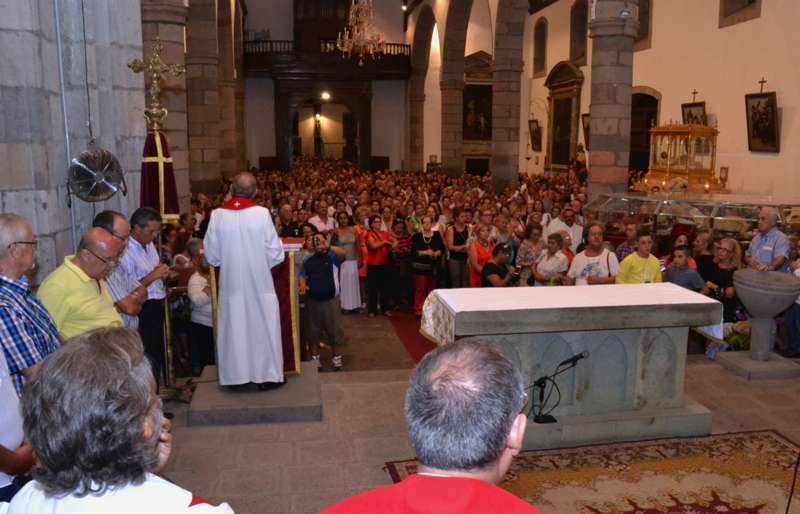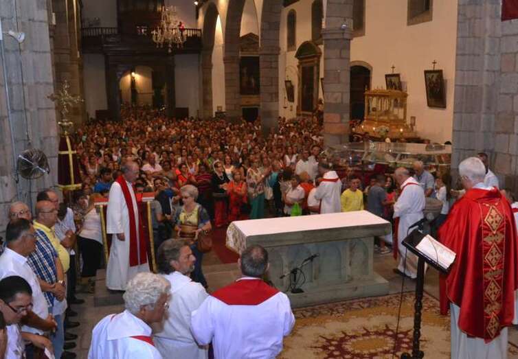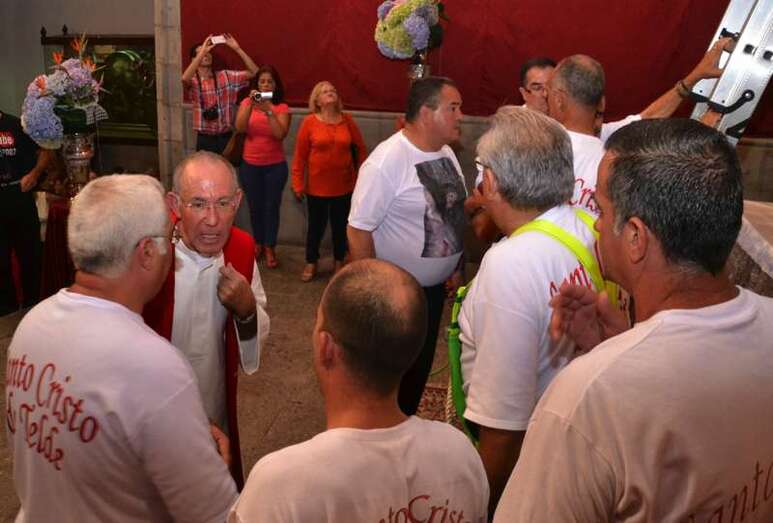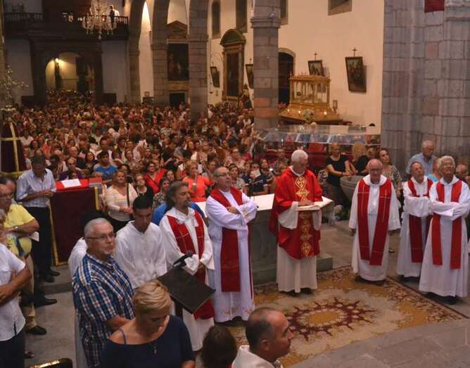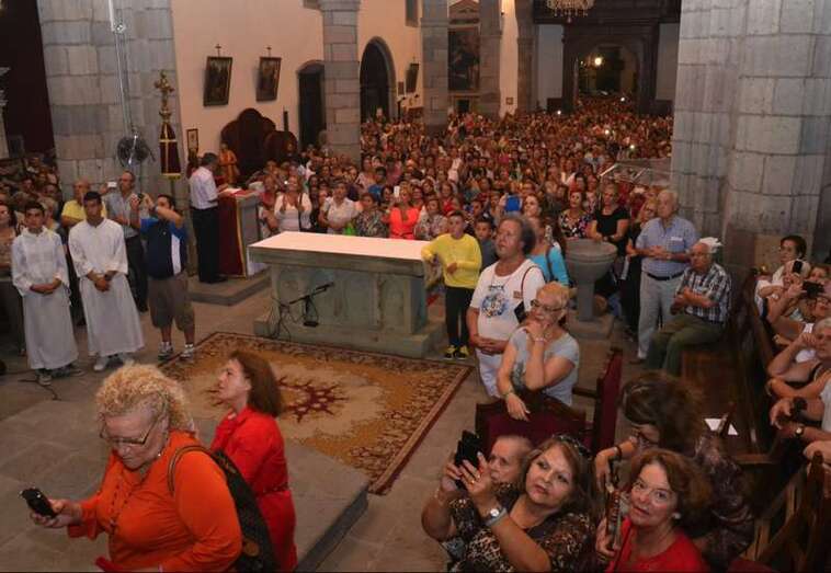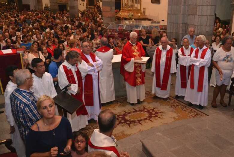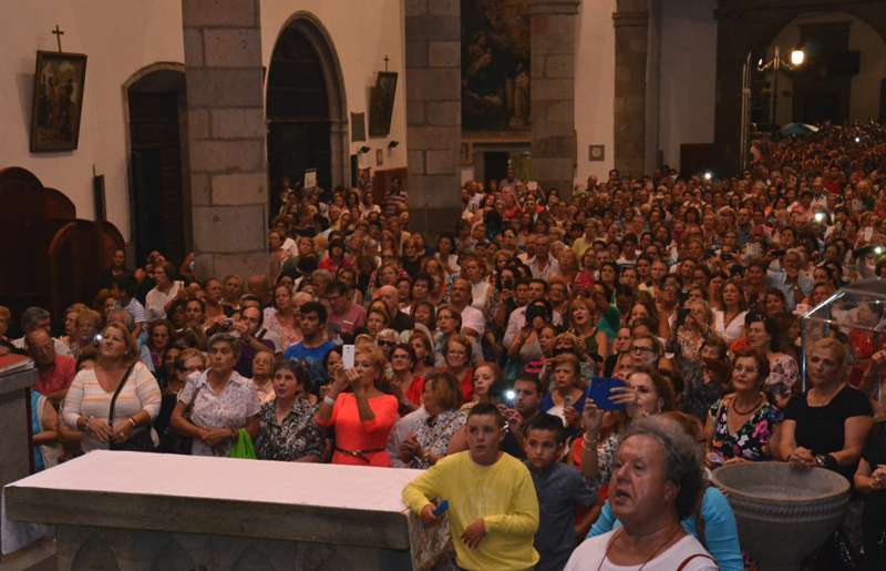 Un año más, la Basílica volvió a ser testigo de innumerables muestras de emoción incontenida cuando pasadas las 20.30 horas, al término de la misa presidida y concelebrada por el vicario general de la Diócesis de Canarias, Hipólito Cabrera, junto a otra quincena de sacerdotes, dio comienzo al ritual de la subida.