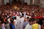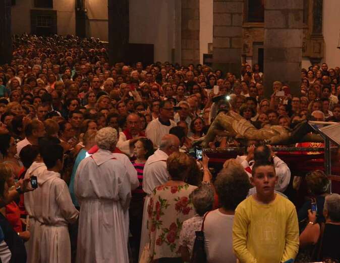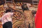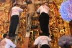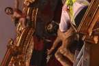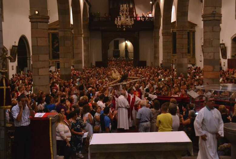 Telde.- Una Basílica Menor de San Juan a rebosar despidió esta noche al Santo Cristo de Telde. La venerada y preciada imagen retornó hace tan solo unos minutos a su hornacina en el Altar Mayor del templo, entre la emoción y los vítores de miles de feligreses. Anoche, una restauración de urgencia reparó el dedo dañado el pasado día 12 durante la ceremonia de Bajada.