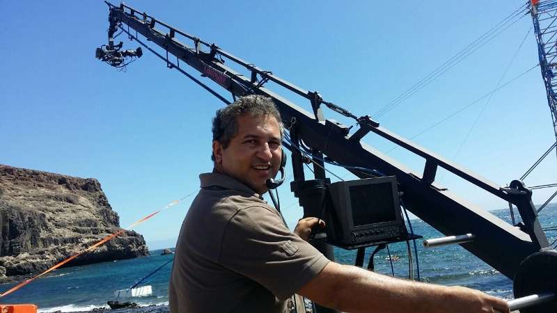 Carmelo Ramos con una de las grúas durante la grabación en Fuerteventura (Foto TA) Carmelo Ramos con una de las grúas durante la grabación en Fuerteventura (Foto TA)