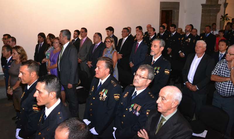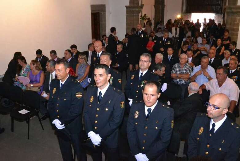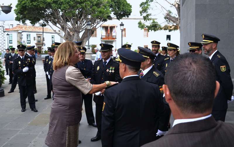 Posteriormente, en la ermita de San Pedro Mártir tuvo lugar la entrega de condecoraciones a los agentes policiales y el reconocimiento a los colaboradores del Cuerpo. Un acto que presidió la Delegada del Gobierno en Canarias, María del Carmen Hernández Bento y el subdelegado Enrique Molina. Al finalizar los participantes disfrutaron de un pequeño ágape en la Casa Condal de San Juan.