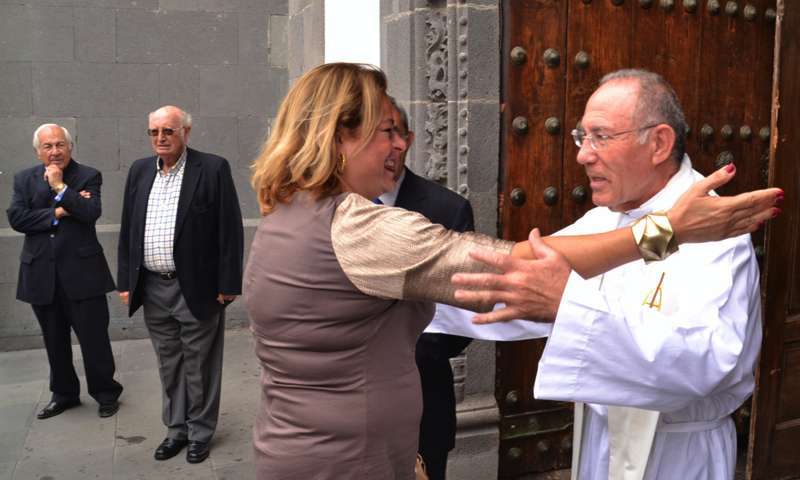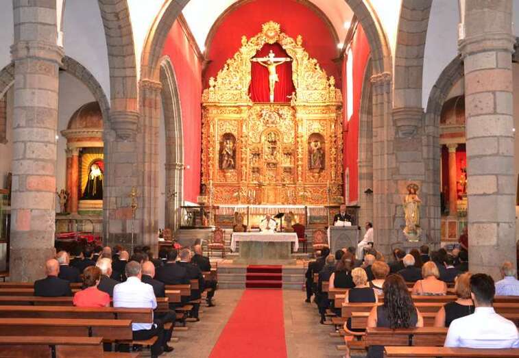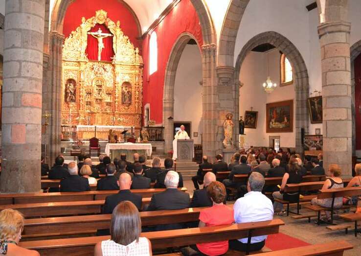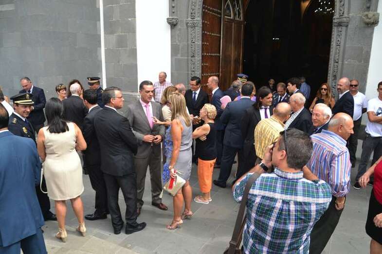 La celebración se inició a las 12.00 horas con una misa en la Basílica de San Juan Bautista, oficiada por el párroco José María Cabrera y amenizada por la Parranda del Vino, a la que asistió una representación de la Corporación municipal, encabezada por la alcaldesa de Telde, Mari Carmen Castellano; así como el alcalde del municipio vecino de Ingenio, Juan José Gil; el coronel jefe de la Base Aérea de Gando, Jorge Clavero Mañueco; una comitiva de la Policía Local de Telde entre la que se encontraba el jefe del cuerpo, Antonio Mederos; y una representación de la Guardia Civil.