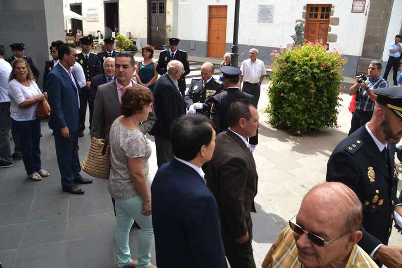 El jefe regional de operaciones de la Policía Nacional, José Luis Lázaro Hernández, también quiso acompañar en esta fecha tan señalada a la plantilla de agentes de la Comisaría de Telde y a su comisario Jesús García Aller. Este último, durante su discurso, puso en valor el compromiso y la vocación de servicio de los efectivos policiales, así como su labor de auxilio a la Justicia y, en particular a la ciudadanía.