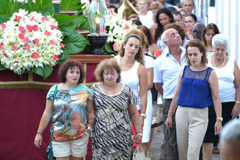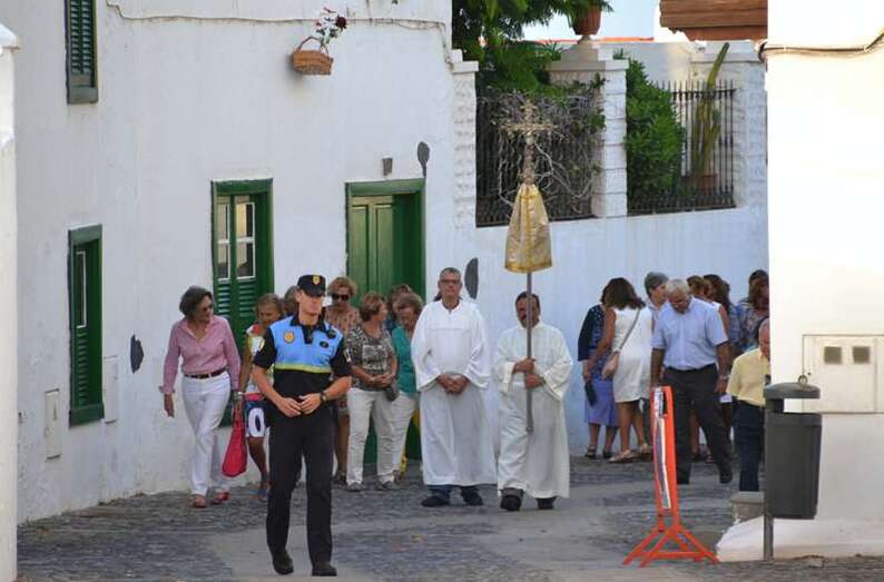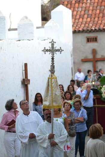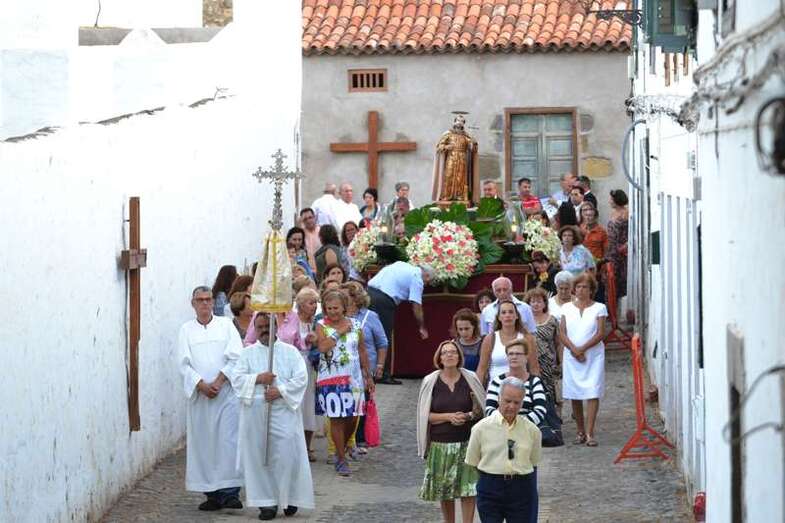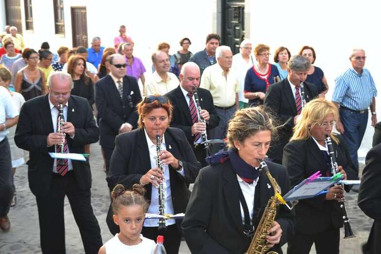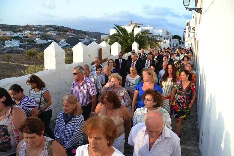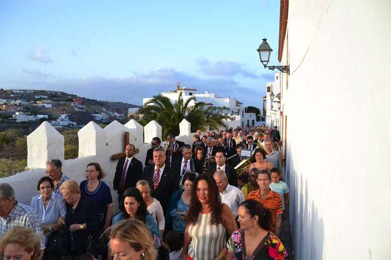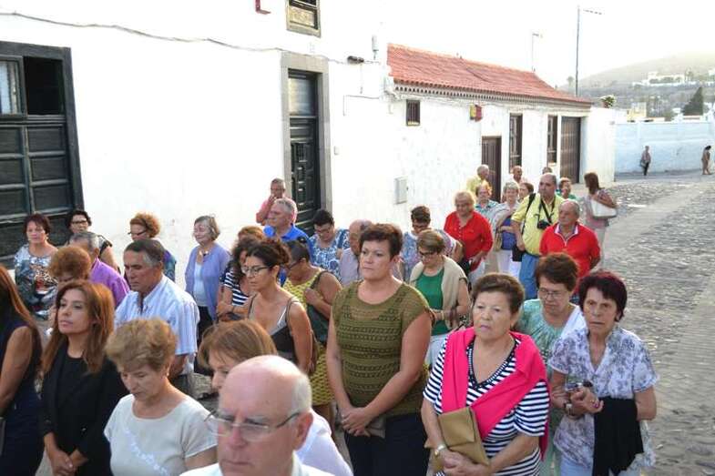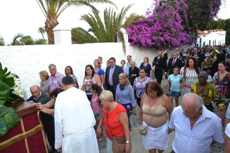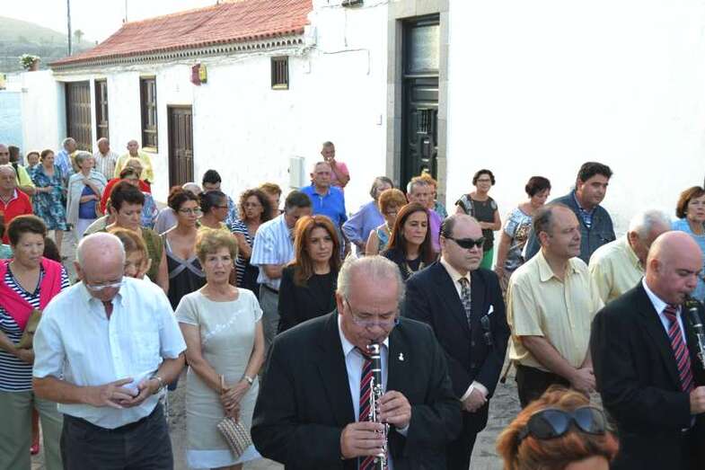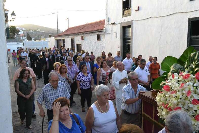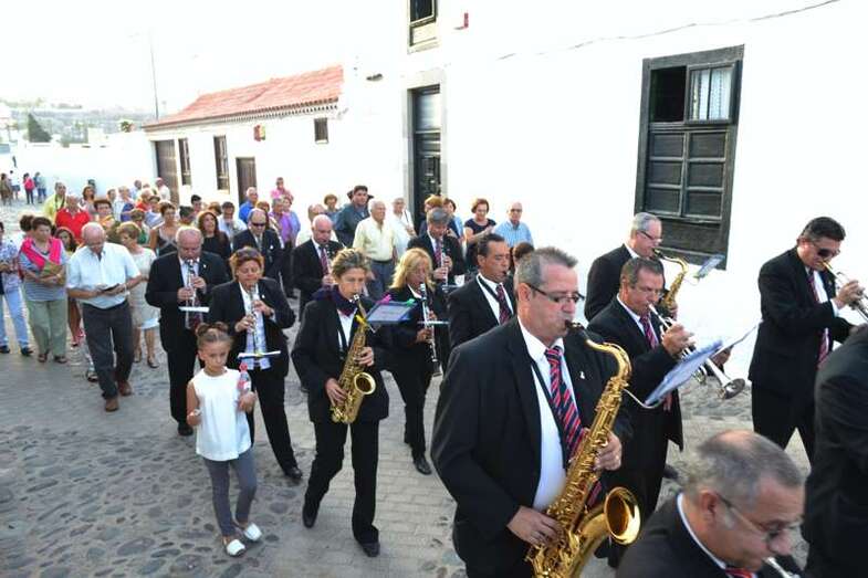 La comitiva religiosa discurrió a los sones de la Banda Municipal de Música de Telde por su recorrido habitual, las calles Portería, Carreñas, Tres Casas y San Francisco; para volver al templo religioso en poco más de media hora y despedirse hasta el próximo año.