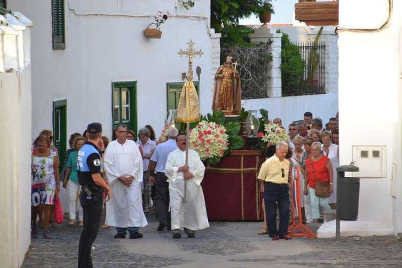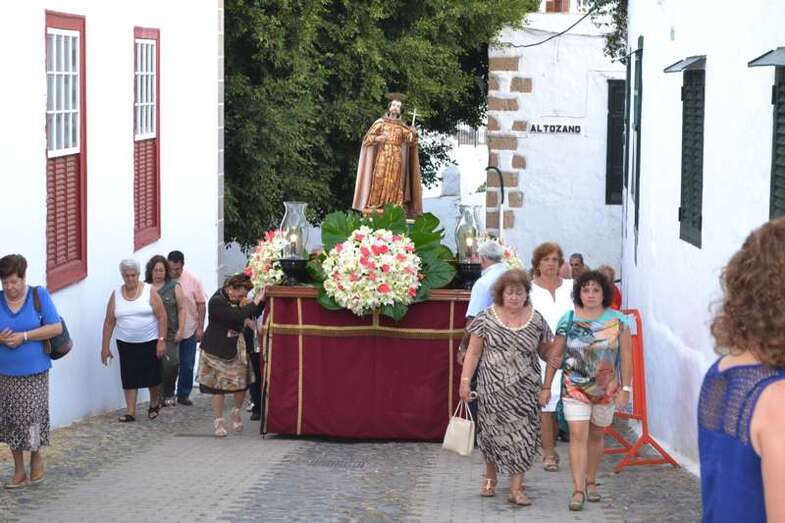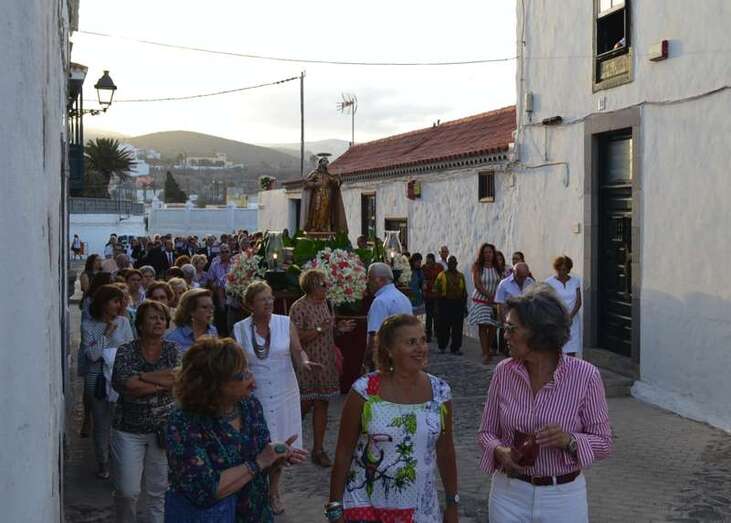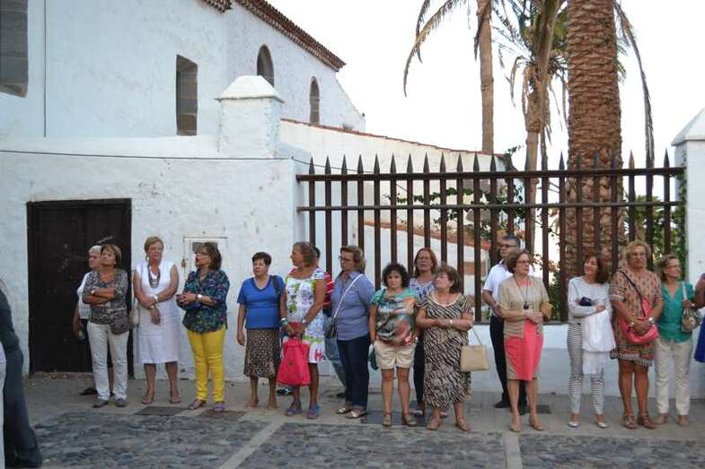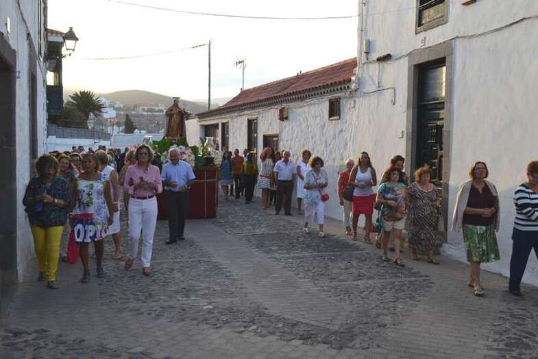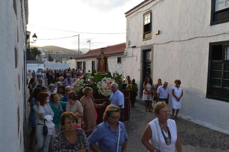 Más de medio cetentenar de personas, entre ellos las concejala Sonsoles Martín y Carmen Hernández, además del consejero insular Francisco Santana, acompañaron a la talla del santo en su discurrir por el corazón del conjunto histórico-artístico de la ciudad.