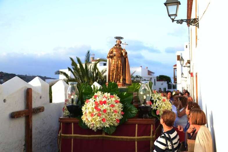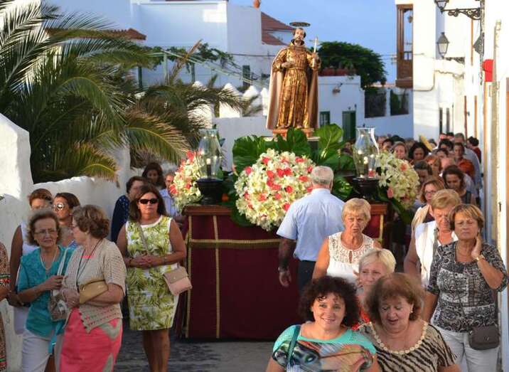Telde.- La imagen de San Francisco de Asís recorrió esta tarde las empedradas calles del histórico enclave teldense al que da nombre. Pasadas la 19.00 horas, tras la misa oficiada por el párroco José María Cabrera y bajo un sonoro repique de campanas, la imagen del santo abandonó su iglesia para salir a la plaza, en donde aguardaban decenas de feligreses y vecinos que lo acompañaron en su procesión.